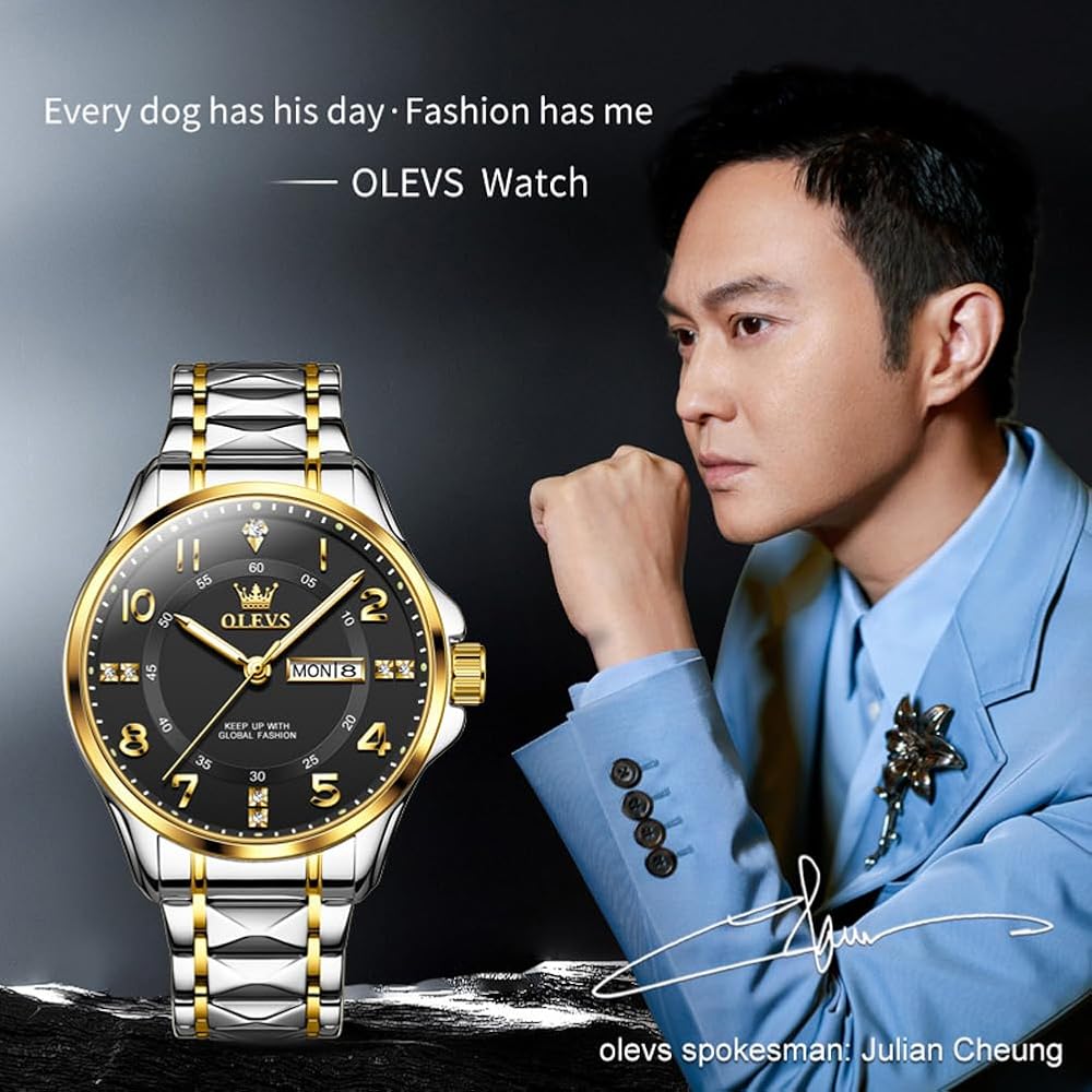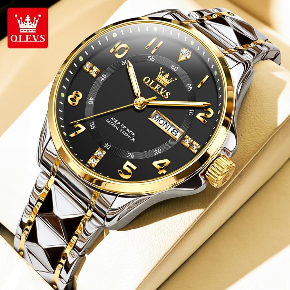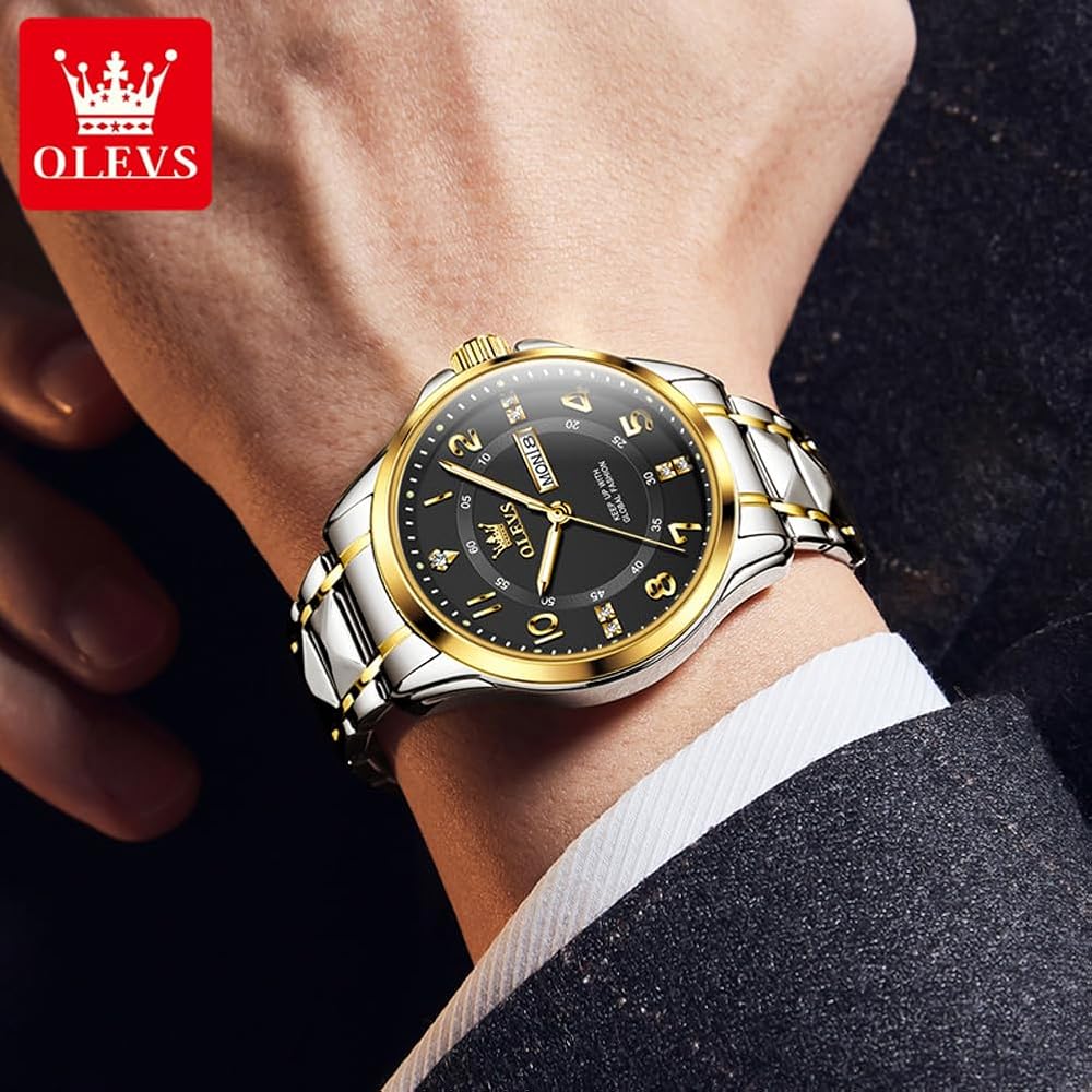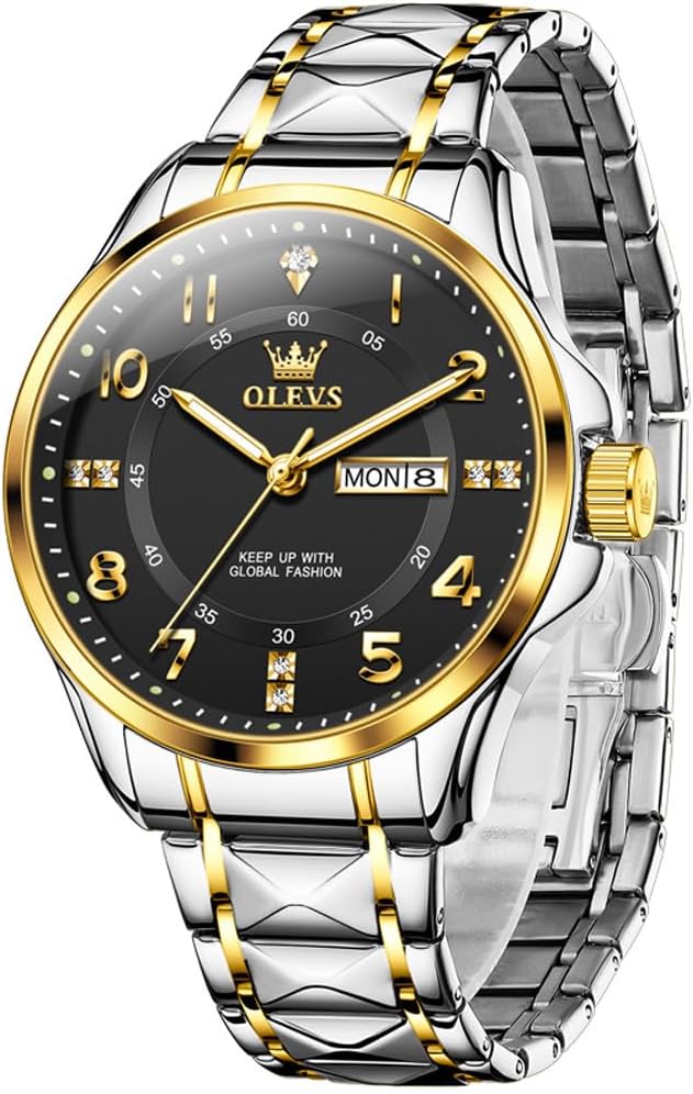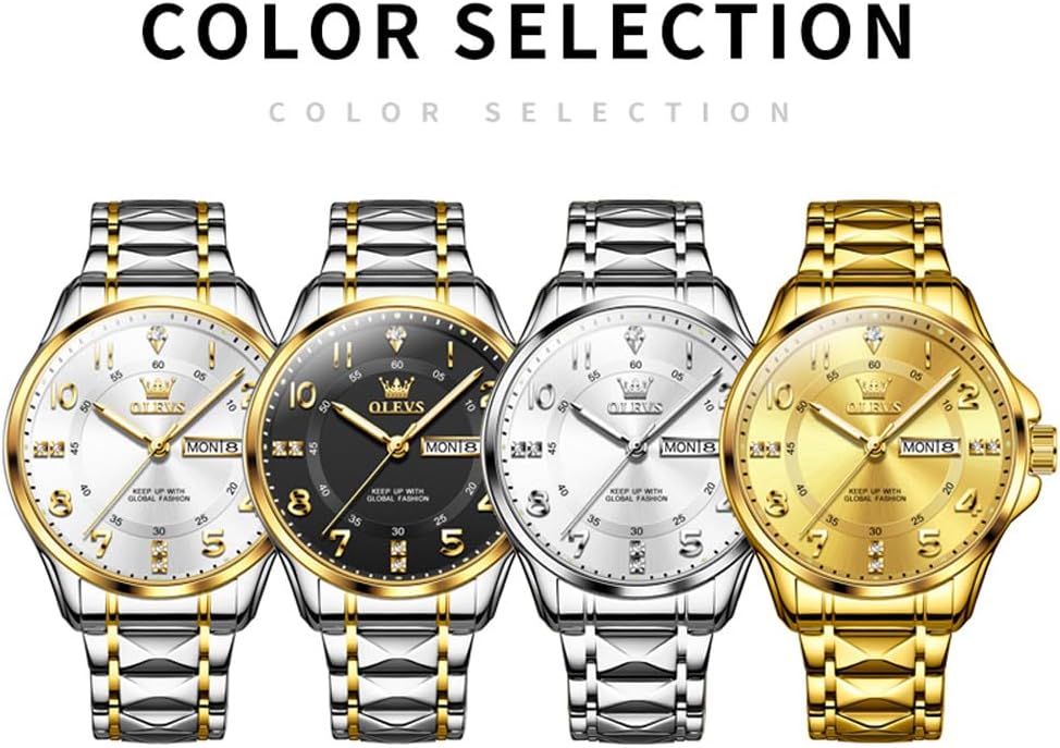 【Fashion Design】OLEVS men's classic watch, using a large dial design to highlight your unique temperament and style, the classic Arabic numerals design makes reading the time simple and easy, and only with diamonds to embellish markers to make the watch more prominent personality and fashion.