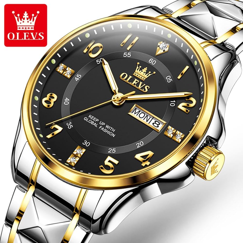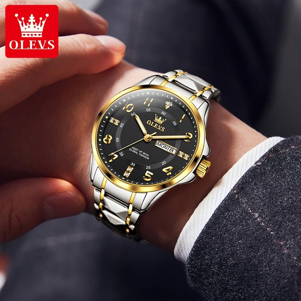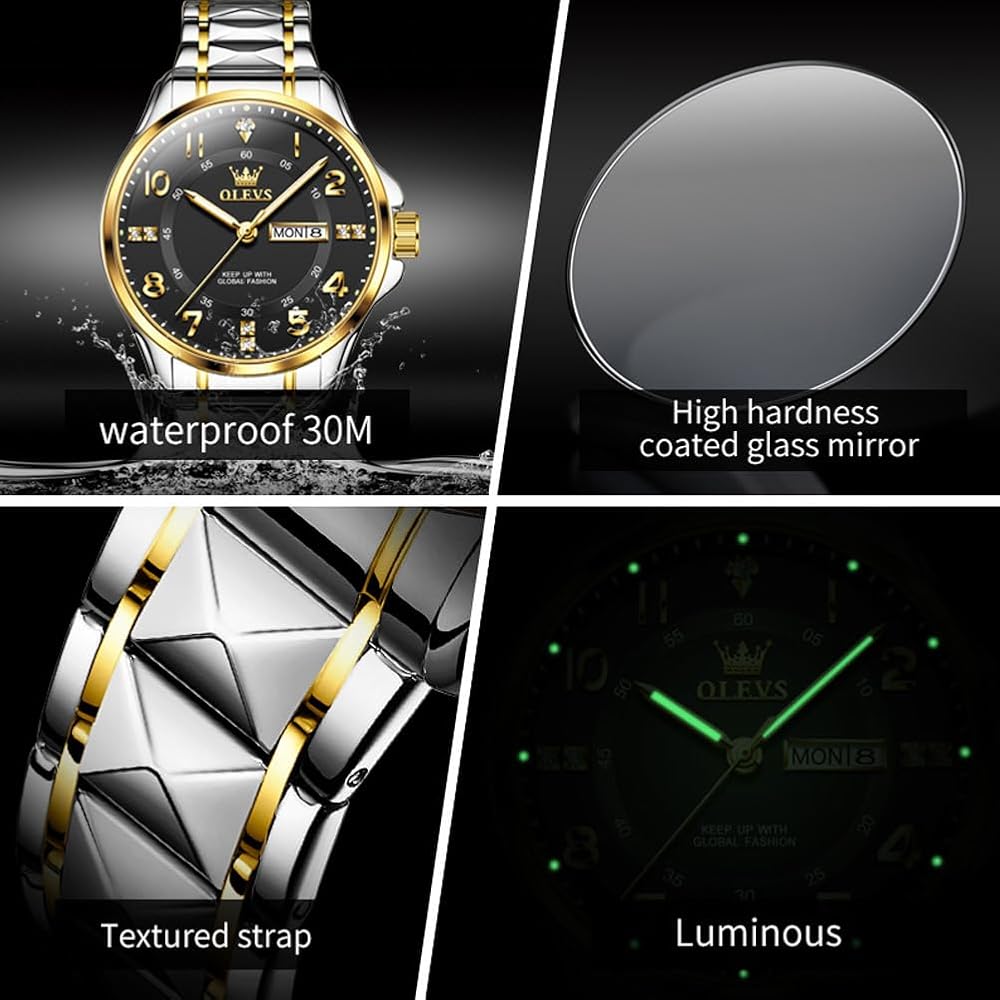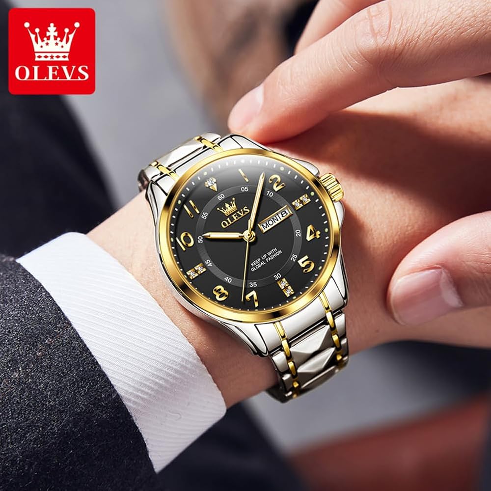 【Fashion Design】OLEVS men's classic watch, using a large dial design to highlight your unique temperament and style, the classic Arabic numerals design makes reading the time simple and easy, and only with diamonds to embellish markers to make the watch more prominent personality and fashion.