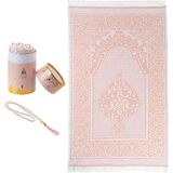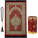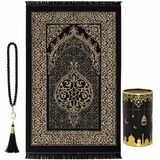 Modefa Turkish Islamic Prayer Mat | Thin Woven Chenille Janamaz Sajada | Muslim Gift Ramadan Eid with Tesbih Prayer Beads | Ottoman Rug with Cylinder Gift Box Set (Black with Box)