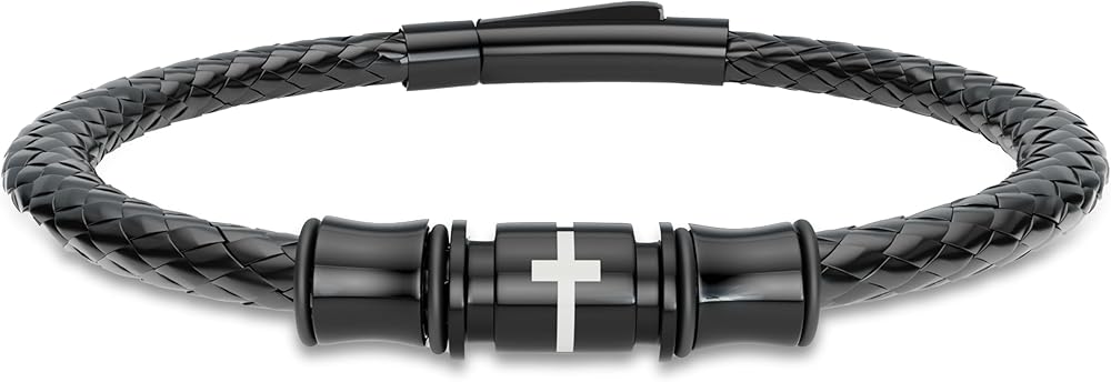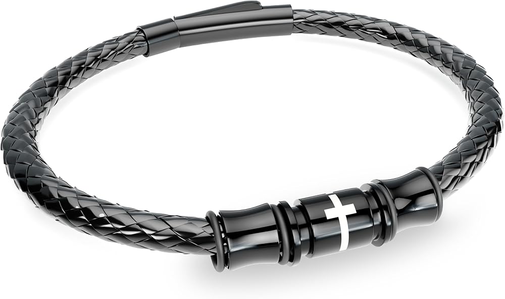 【Christian bracelet for men】 Black religious bracelets for men can be worn as everyday Christian jewelry, Cross bracelets for inspiration and positive energy for the mind and soul.