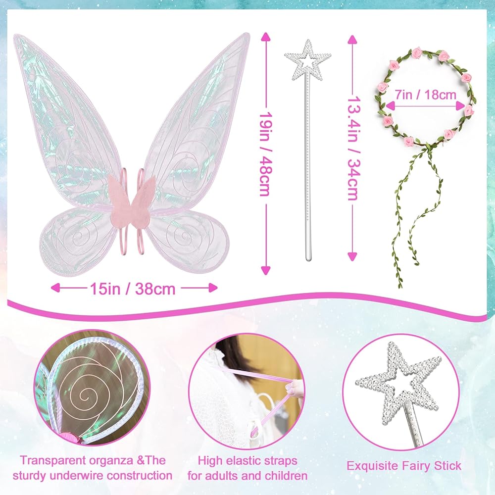 【Size】15" x19"/ 38x48 cm,The matching fairy wand is 13.4" long.A size that fits most children and women's shoulders.