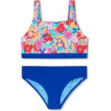She'll love making waves in this colorful bikini. The top features a fun print and strappy back, while the bottom has a classic silhouette. The set is made from chlorine- and pill-resistant fabric with Block the Burn UPF 50+ sun protection to keep her safe in and out of the pool.