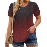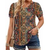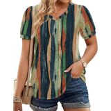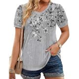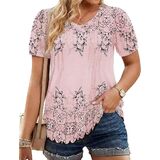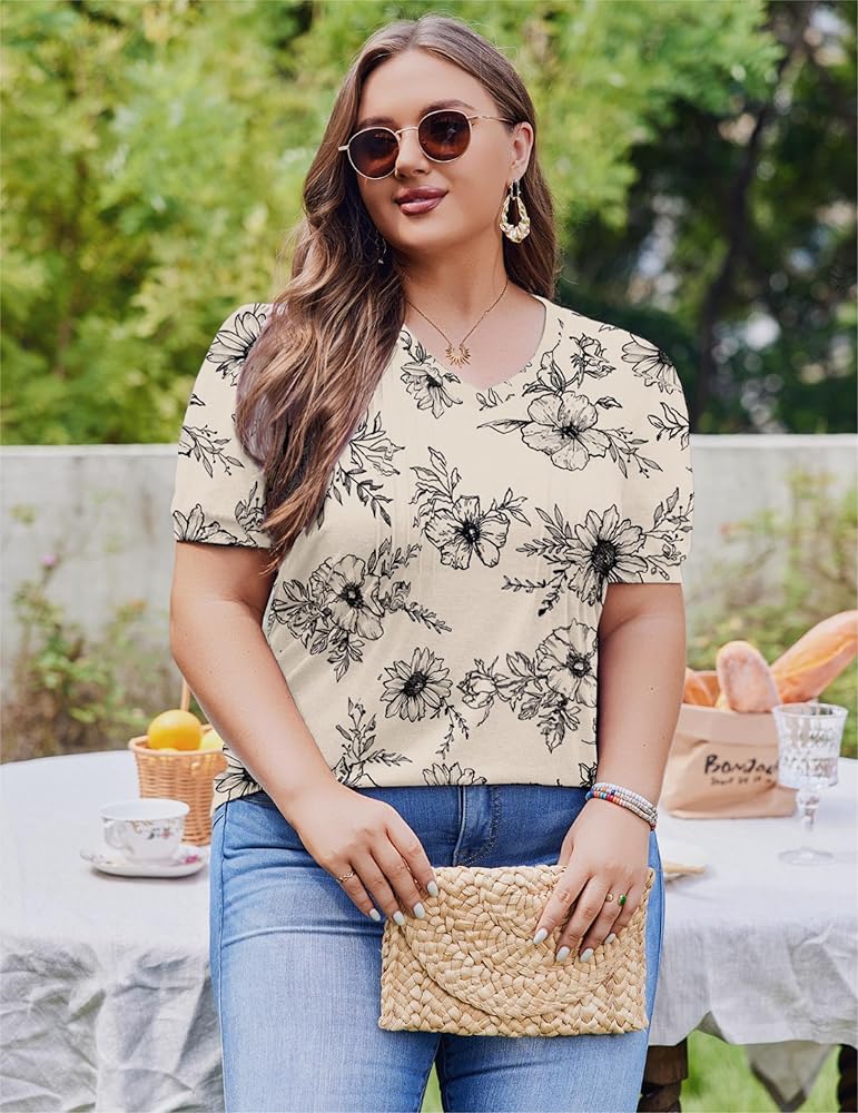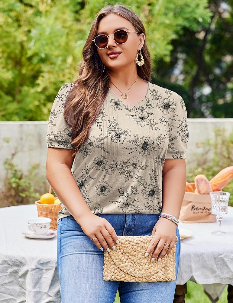 Feature: Plus size v neck tops for women/ plus size puff short sleeve tops/ plus size floral print tunic/ plus size loose fitting tops/ plus size flowy tops/ plus size woman summer tops.