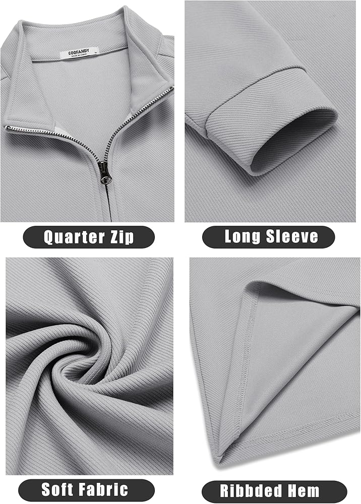 【FEATURES】The men's quarter zip sweatshirt design in polo collar, long sleeve,ribbed cuffs,and zipper pieced collar adds color and interest. The simple and classic solid color design makes it never be out of fashion.