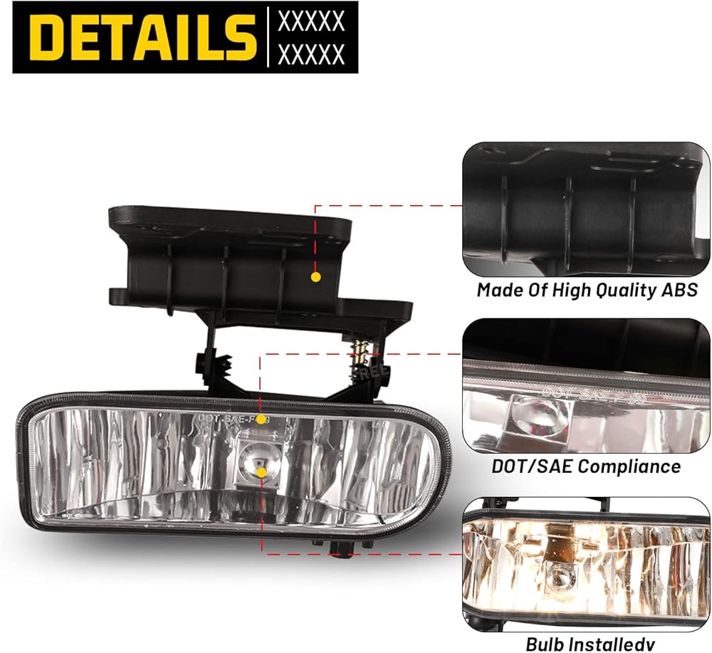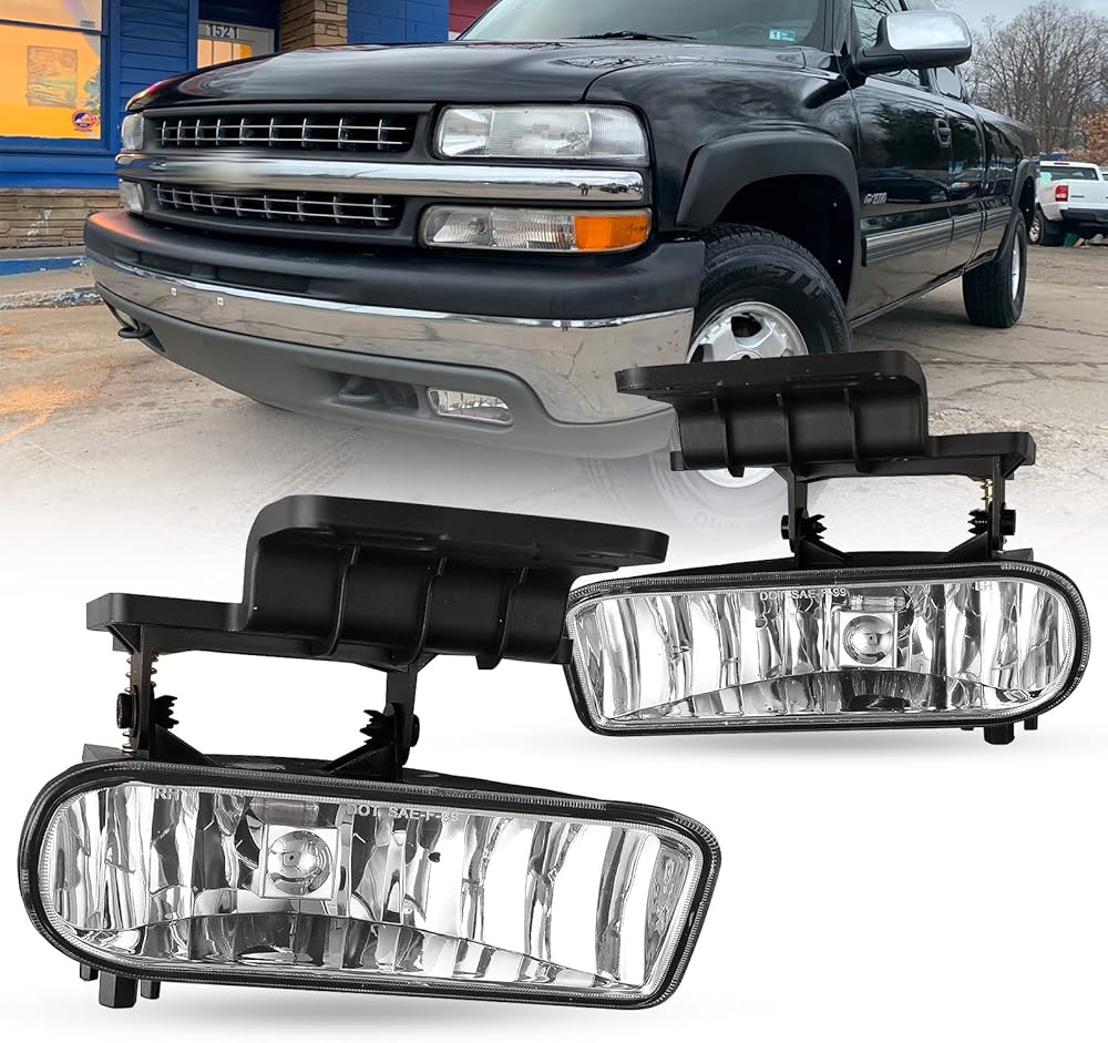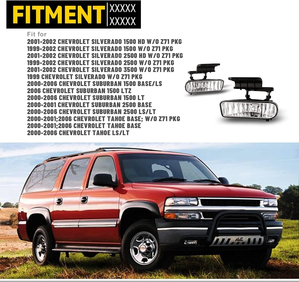 [𝗩𝗲𝗵𝗶𝗰𝗹𝗲 𝗙𝗶𝘁𝗺𝗲𝗻𝘁] - High Quality Fog Light Assembly Replacement for Chevy Silverado 1500 & 2500 1999-2002/ Silverado 3500 2000-2001/ Suburban 2000-2006/ Tahoe 2000-2006. Partslink No.# GM2593113; GM2592113.