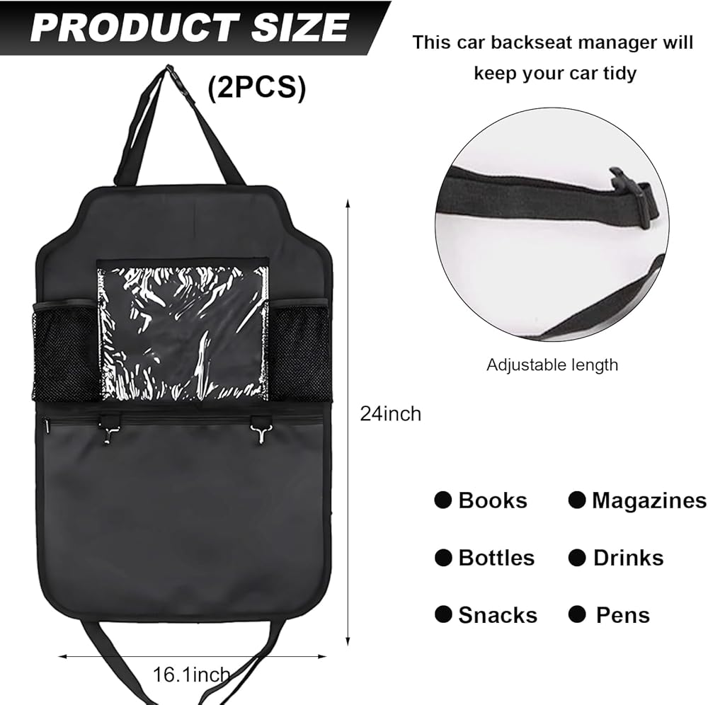 【With Clear Tablet Holder】: This backseat organizer comes with a practical transparent touch screen tablet holder. You can place your phone or tablet in it and it acts as a cell phone bracket to free your hands for easy video viewing when sitting in the back seat.