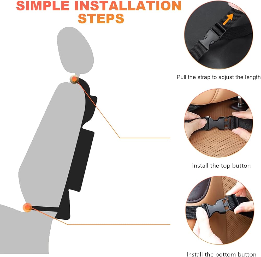 【Easy Installation】: This seat back storage bag is very easy to install. All you have to do is secure the bottom straps to the bottom of the front seat. Then, simply wrap the top straps around the headrests and closure the buckle to secure it on the back of the front seat.