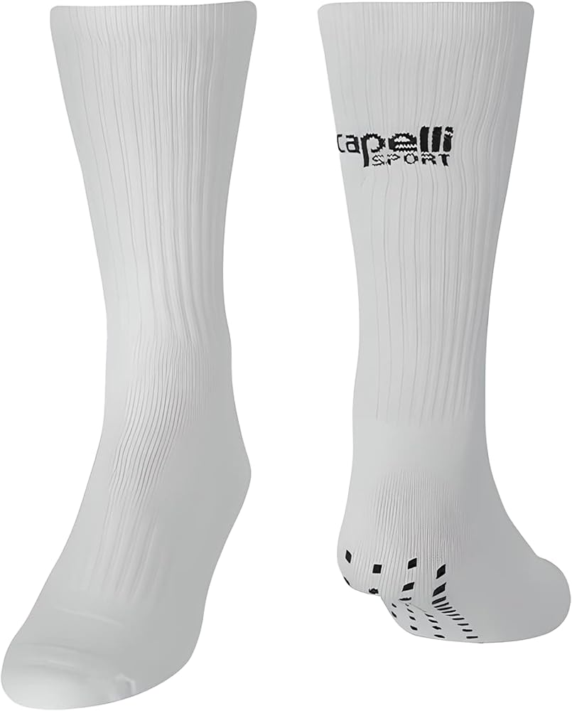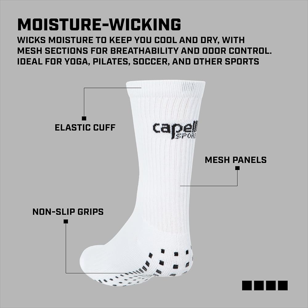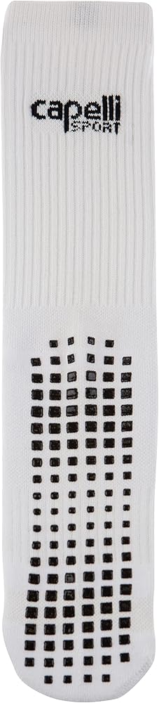 Improve your balance and stability while keeping your feet comfortable with Capelli Sport no slip sport socks. Grips on the bottom of the sticky socks keep you from sliding around in your cleats while on the field, and provide a nice barrier between your foot and the floor for better bodily movement, making these socks ideal for dance and ballet. Composed of nylon and polyester fabric, these barre socks wick away moisture from your skin to keep you cool and dry, and features mesh sections to provide ventilation and prevent unwanted odors. For an optimal belnd of comfort and performance, these cozy crew socks are the perfect choice.