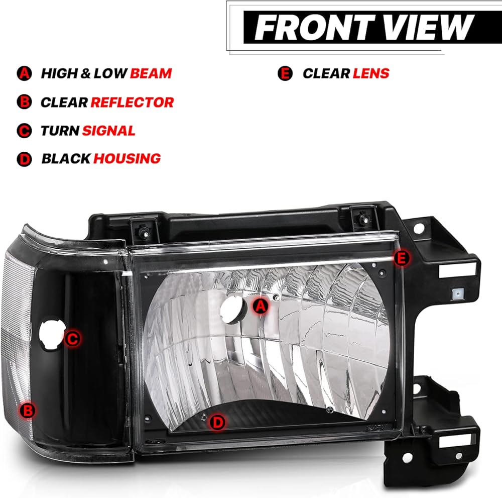 M-AUTO Headlights Assembly Compatible with 1987-1991 Ford Bronco F-150 F-250 F-350, Driver and Passenger Side, Black Housing Clear Lens FO2502104 FO2503104
