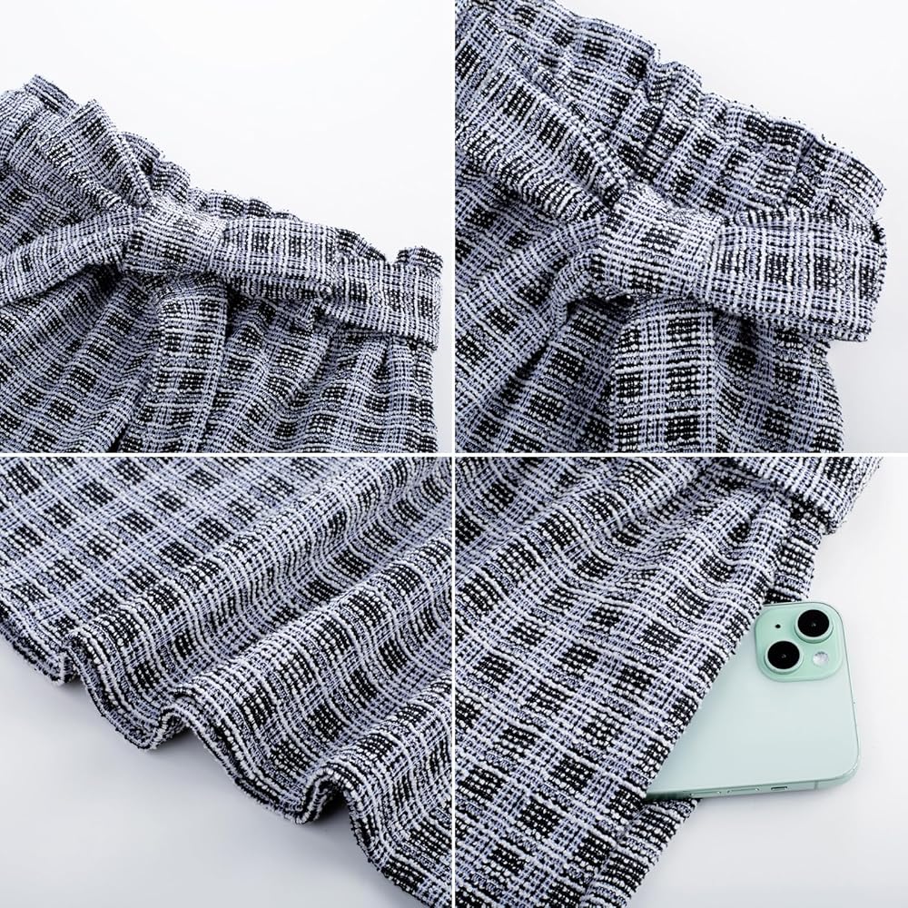 Great Fabric & Comfy: This tweed skirts are made from 60%Polyester+33%Cotton+7%Elastane, Comfy fit, elastic waist makes it is easy to pull on, loose fit style make it more comfortable to wear.