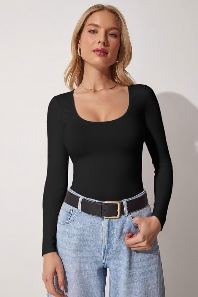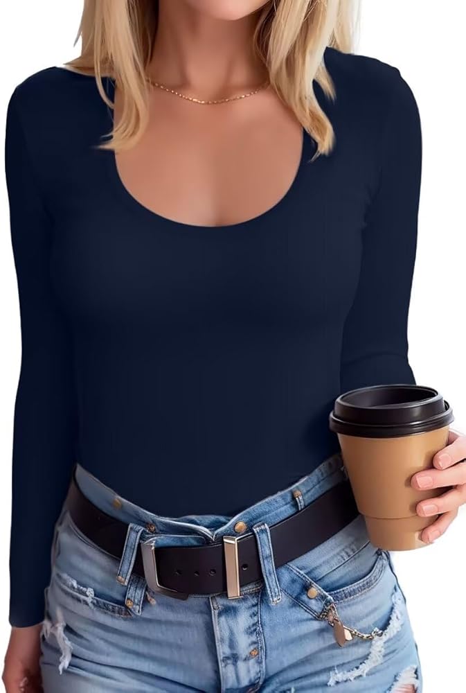 Scoop Neck Long Sleeve Shirts:The scoop neck of SANDERY shorts sleeve shirt is exactly what's pictured with nice sewn edges that make you have better posture than you actually do.