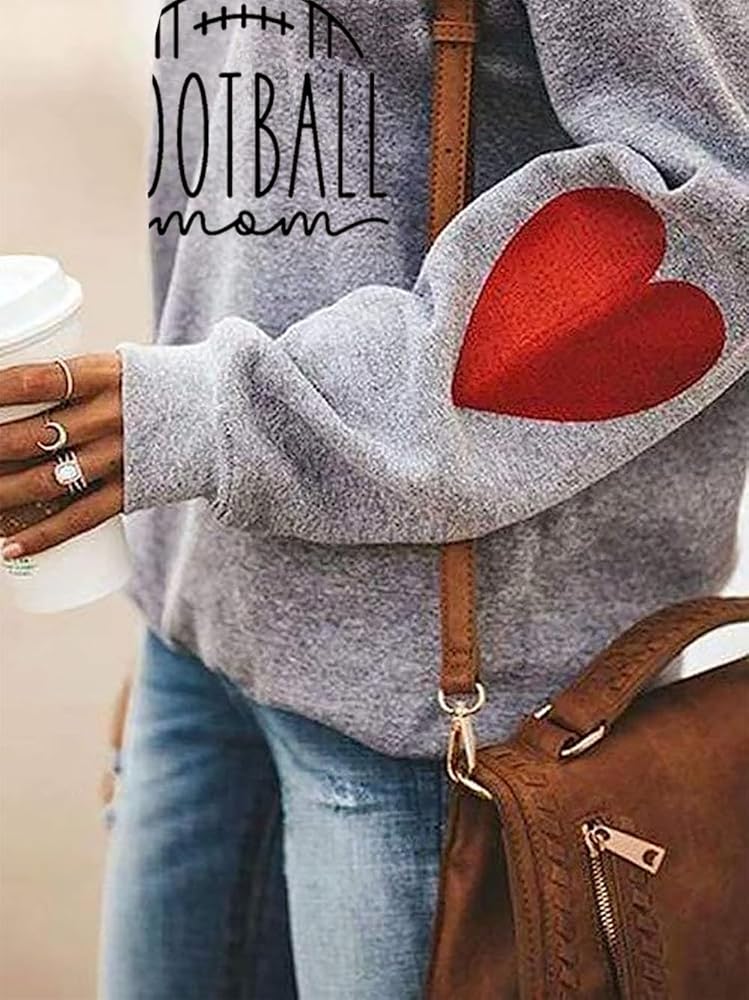 • 【Feature】Women soccer mom sweatshirt,football mom sweatshirt , baseball mom sweatshirt, balls graphic pullover tops for mama,funny game day vibes outfit. Long sleeve,drop shoulder,classic crew neck, cute love heart print, casual loose fit style.