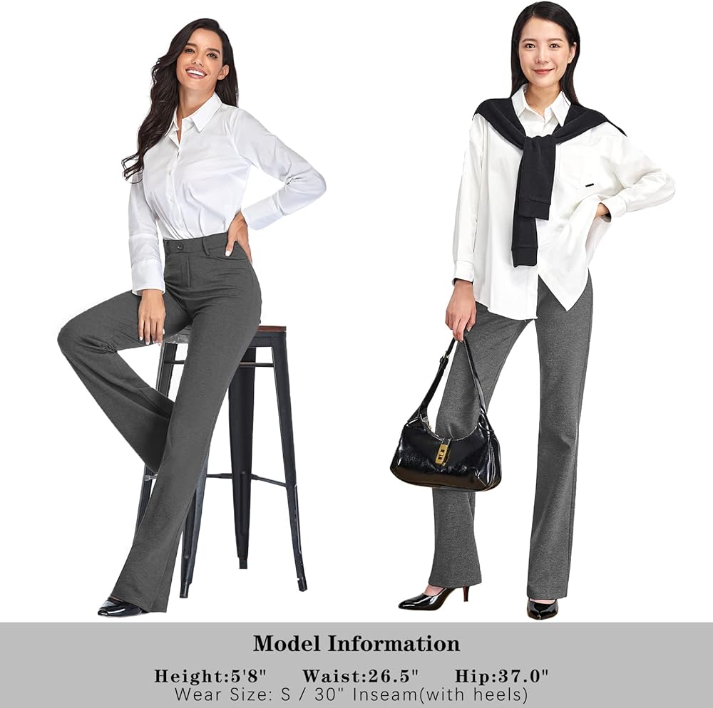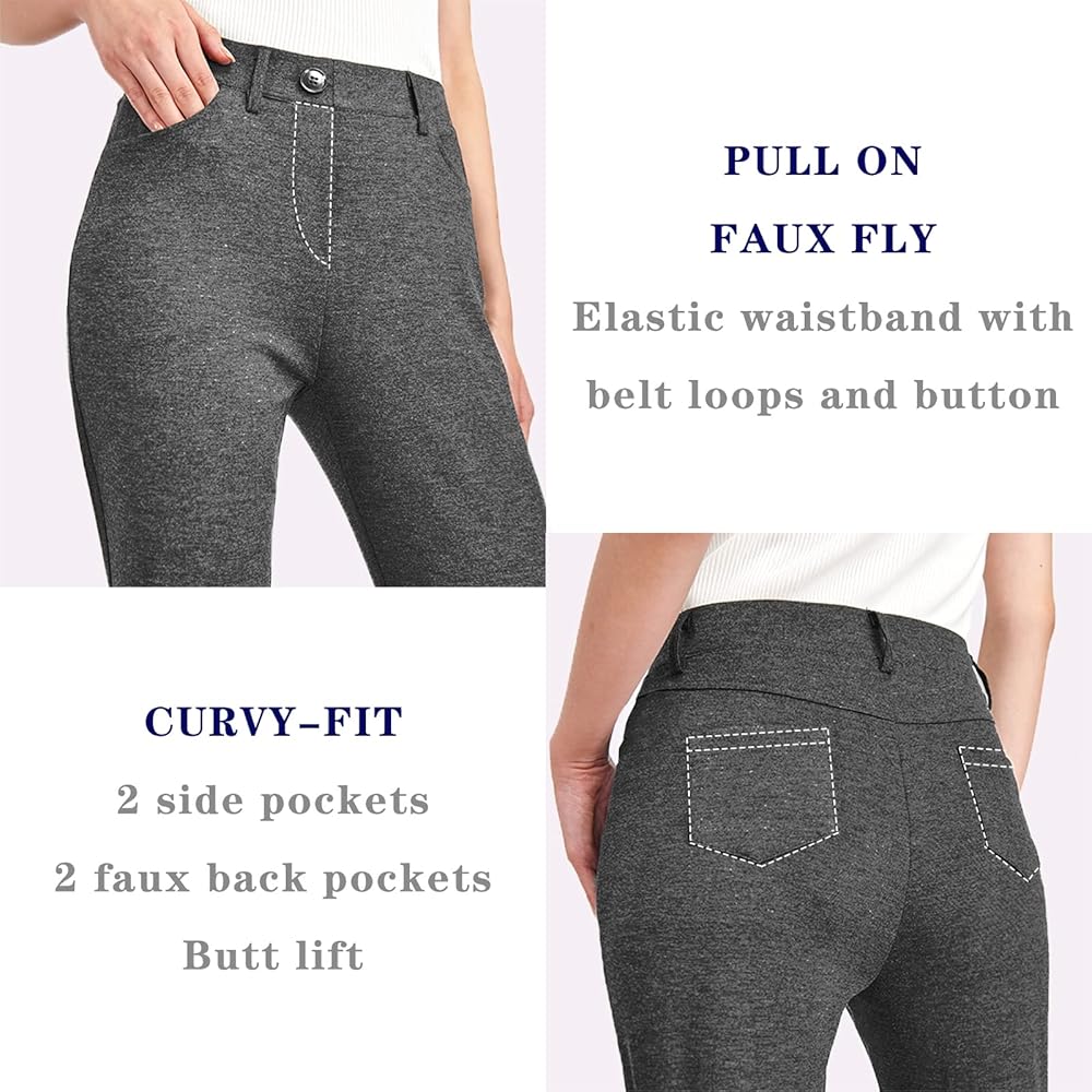 STRETCHY & SOFT BOOTCUT: Material blended with spandex makes office work pants cotton soft and 4-way stretch, fitting like yoga pants. Boot-cut fits through hip to thigh, slight flared from the knee down, curvy-fit over your sleek shape and makes you elegant.