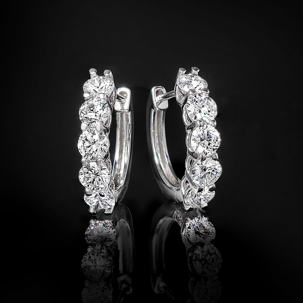 LAB-GROWN DIAMONDS AND 14KT WHITE GOLD — 1.00 ct. t.w. lab-grown diamond five-stone hoop earrings in 14kt white gold. VS2-SI1 round brilliant-cut lab-grown diamonds. Polished finish. 1/2 in. hanging length. 1/8 in. wide. Hinged post backings.