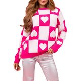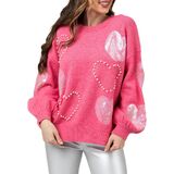 Features: Long sleeve, love heart print, crew neck, loose fit. Women valentine's day pullover sweater, women cute heart print knitted top shirt, women y2k heart sweater top, women Valentines Day knitted top, crew neck cute heart knitted sweater for women.