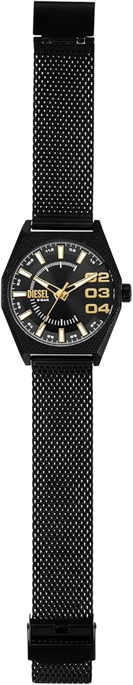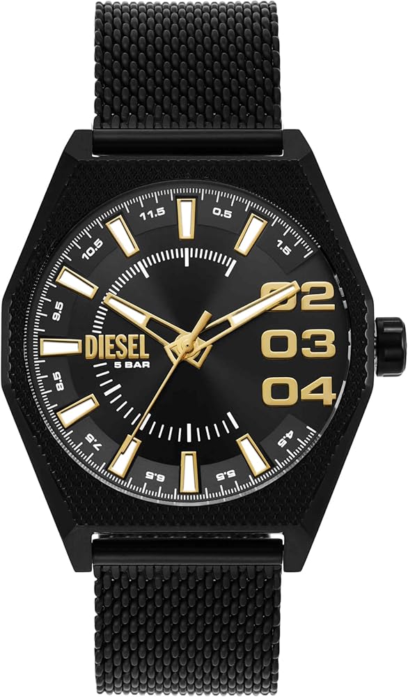 The Diesel Scraper features a lightweight, modern design with an industrial twist. The dial's three oversized hour marks along with the rugged texture on the case and bracelet come together to create a unique style statement.