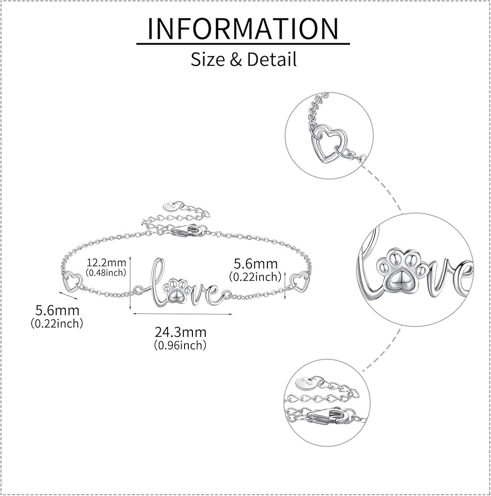 ❤Material❤The paw print braceletis sterling silver, Protect and safe for sensitive skin. No Nickle, Hypoallergenic,never rust, corrode, rust or stain.