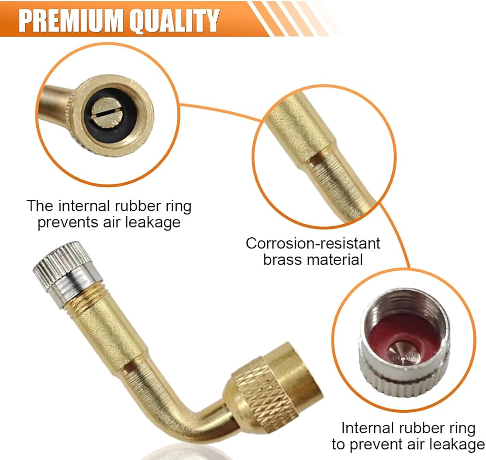 【Premium Material】:The car tire valve extension is made of high-quality copper metal, sturdy, wear-resistant, not easy to deform, and not easy to rust, the valve core adapter is equipped with a rubber sealing ring and sealing dust cover, which can ensure that the tire inflatable will not leak, with good sealing.