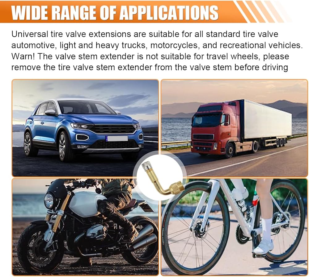 【Wide Usage】:The car valve extension adaptor has a wide range of applications for most cars, trucks, RVs, trailers, motorcycles, bicycles, SUVs, and more.