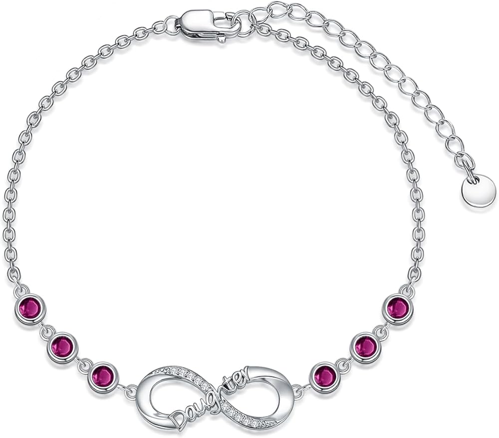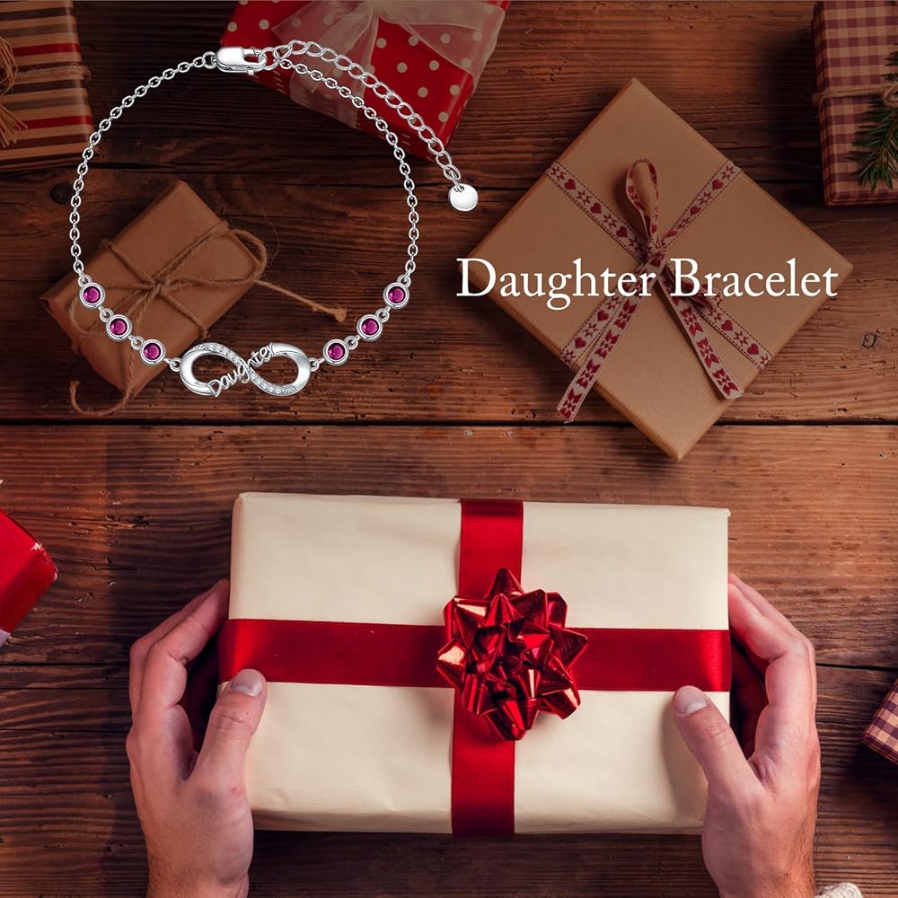 Daughter Birthday Gift from Mom♥ Infinity daughter bracelet is designed with 12 birthstones, each birthstone color has its special meaning, choose the special birthstone daughter bracelet as a birthday gift and Christmas gift, it'll be a very special way to express your love to her