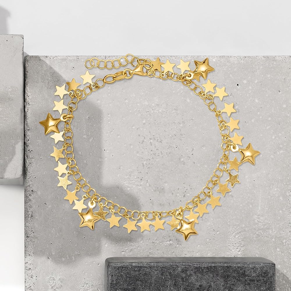 Ross-Simons Italian 18kt Gold Over Sterling Star Drop Bracelet. 7 inches