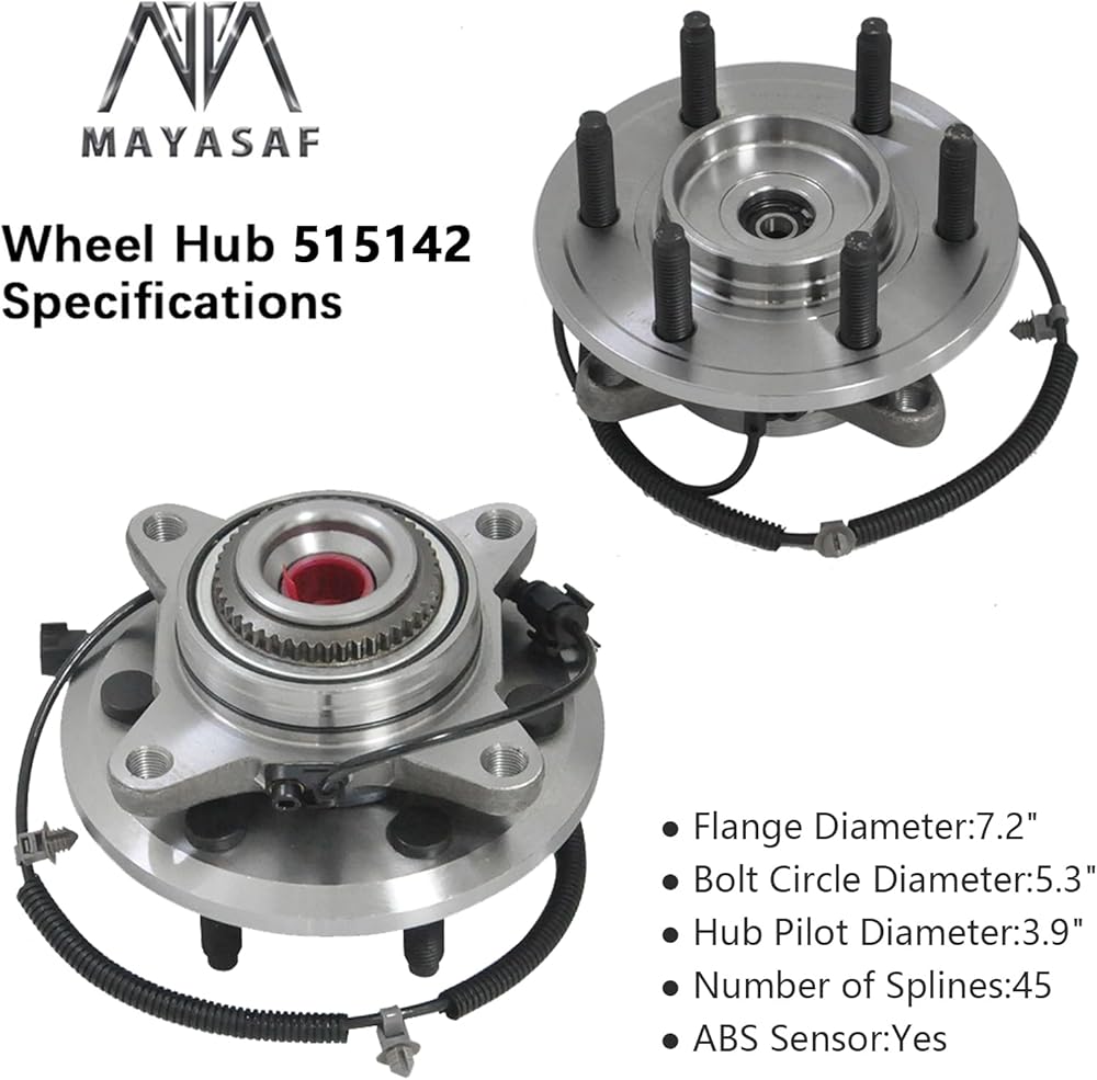 MAYASAF 515142 Front Wheel Hub and Bearing Assembly 6 Lugs w/ABS Fits 2011-2014 for Ford F-150/2011-14 for Ford Expedition/ 2011-14 for Lincoln Navigator, 4WD Only Excludes Heavy Duty Models