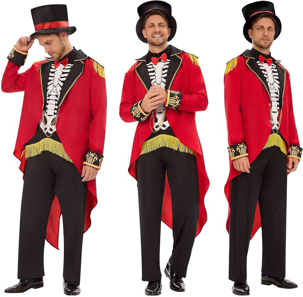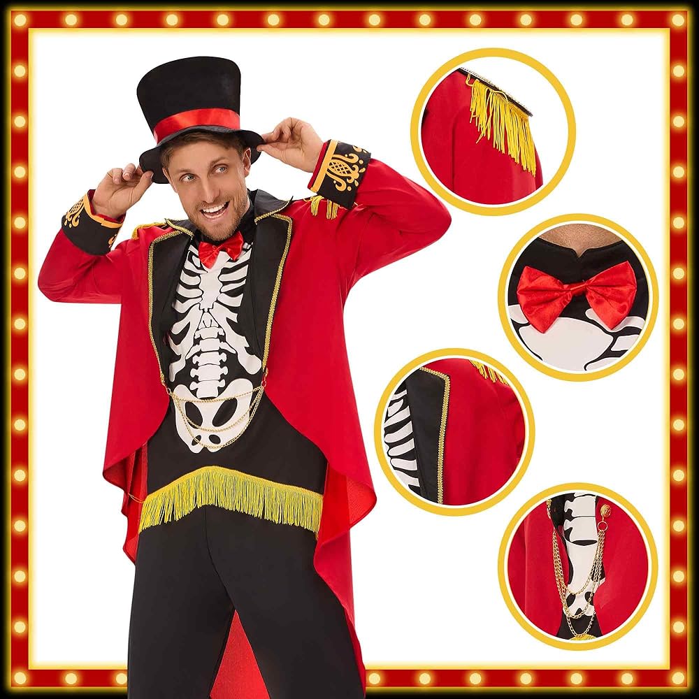 Ringmaster Costume Set: This ringmaster costume men set includes ringmaster jacket, pants, and hat. Complete your look with this halloween costumes for men and become the center of attention at any halloween event
