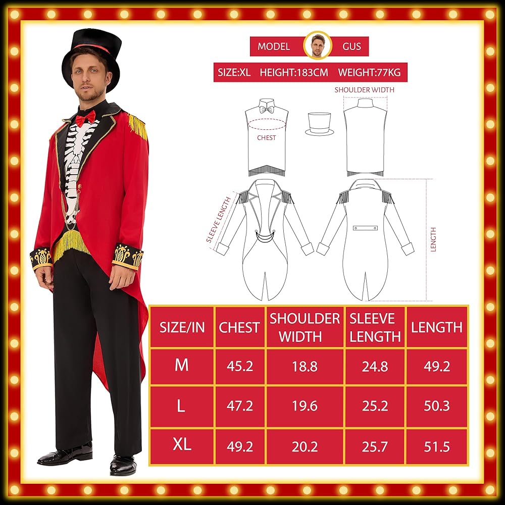 Fit Comfort: This ringmaster costume mens is designed for We offer options suitable for most body types, including a standard size S, M, L and XL. Please see our size chart for information about sizing and fit