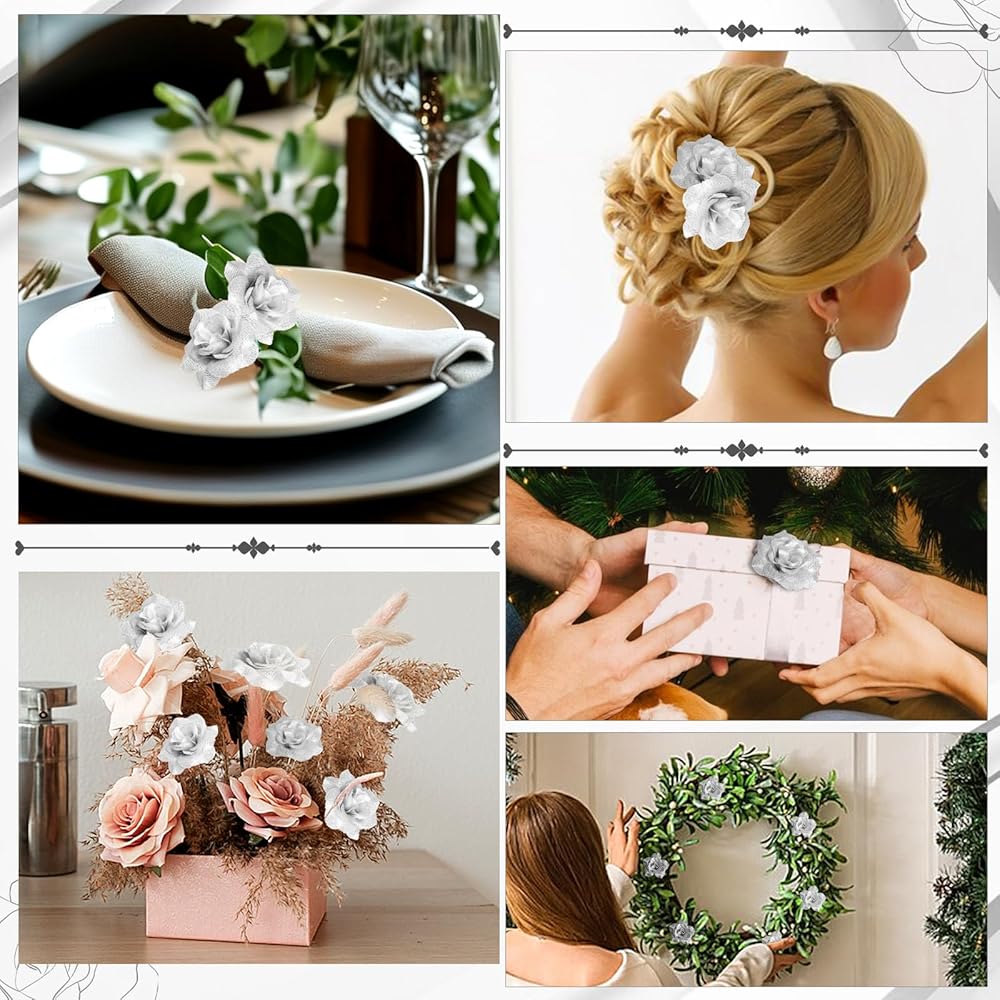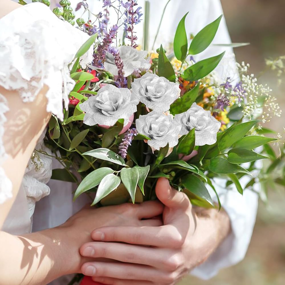 Include: Each set of 36 silver fake flowers are carefully packaged in a PVC plastic box to ensure they arrive in great condition; Whether you are a DIY enthusiast or a professional decorator, these roses are good for various decoration projects, adding a touch of glamour and sophistication to any space