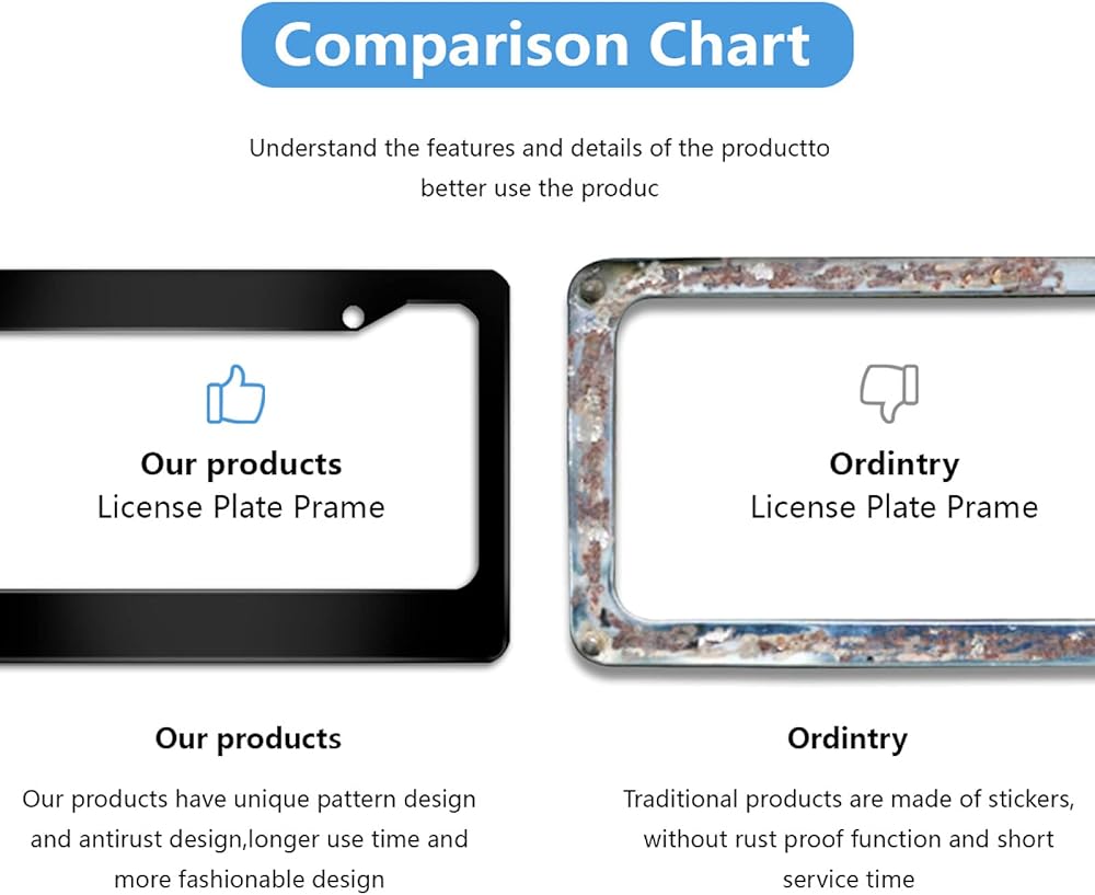 【PREMIUM QUALITY】 High quality Thin METAL license plate frame; rust, corrode, rot and fade resistant, waterproof FULL COLOR graphics.