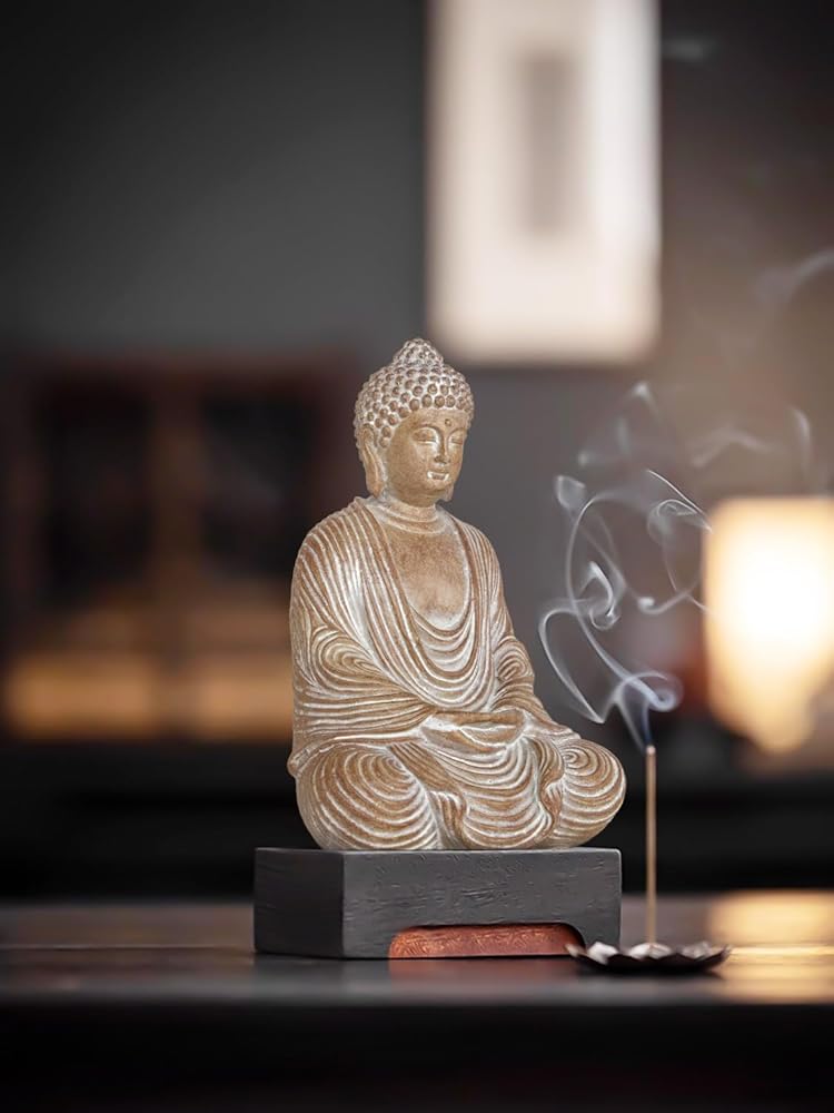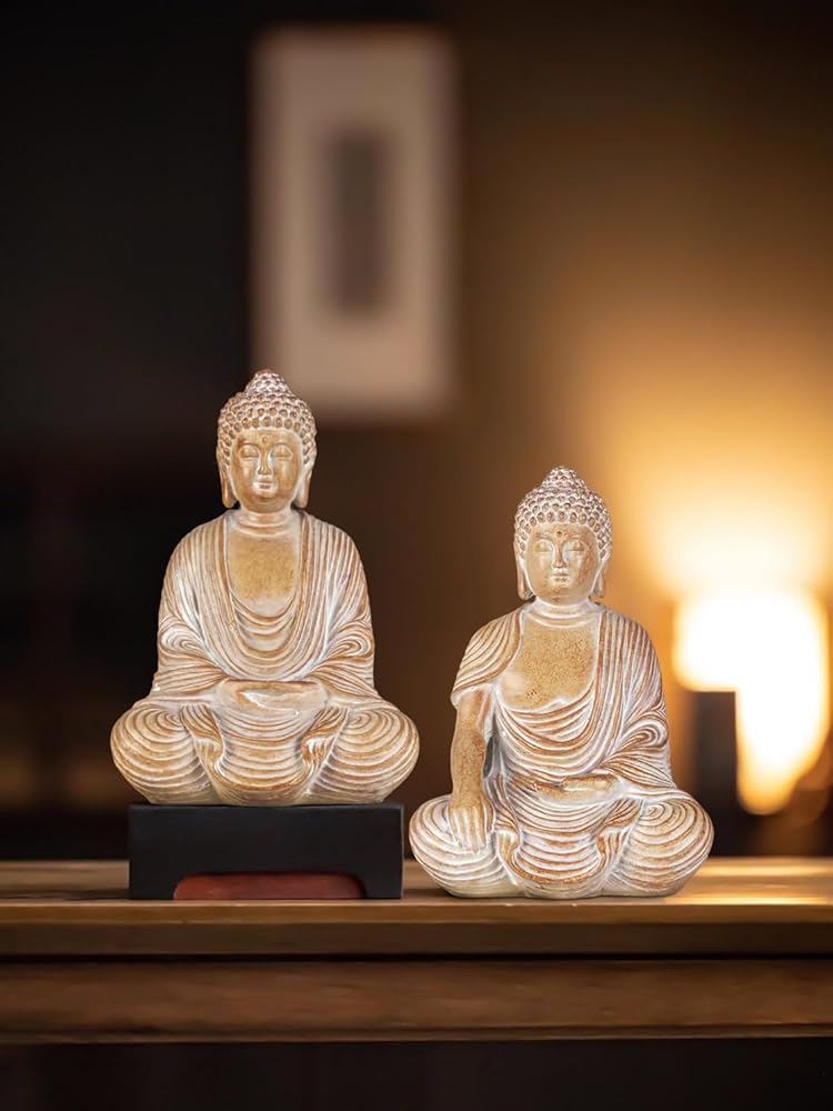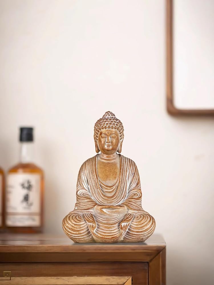 Compact and Elegant Design: This 6.3 inch Buddha statue is an ideal size for small spaces. It fits seamlessly on shelves, mantels, or tables, making it an excellent choice for a Buddha altar or as part of your Buddha decorations for home. This little Buddha statue brings a sense of calm and serenity to any room. Whether used as Buddha table decor or incorporated into your Zen statues home decor indoor, this cute Buddha statue enhances the atmosphere, helping you relax and unwind.