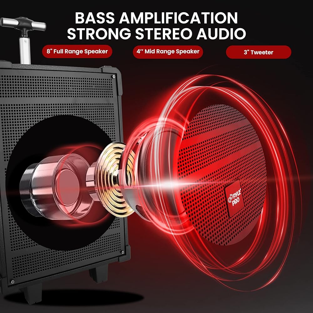 800 WATTS POWER: For karaoke, the 800 watt 12 inch wireless speaker has a 4 Ohm impedance and delivers Full Range Stereo Sound Reproduction. A sound system with 12'' mid-range speakers and a 3'' tweeter
