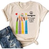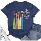 Features: Imagine All The People Living Life In Peace letter print, happy International Day of Peace shirts, peace sign shirt, love and peace tshirt, funny kindness tops, funny graphic tees shirts, o neck, vacation short sleeve clothes.