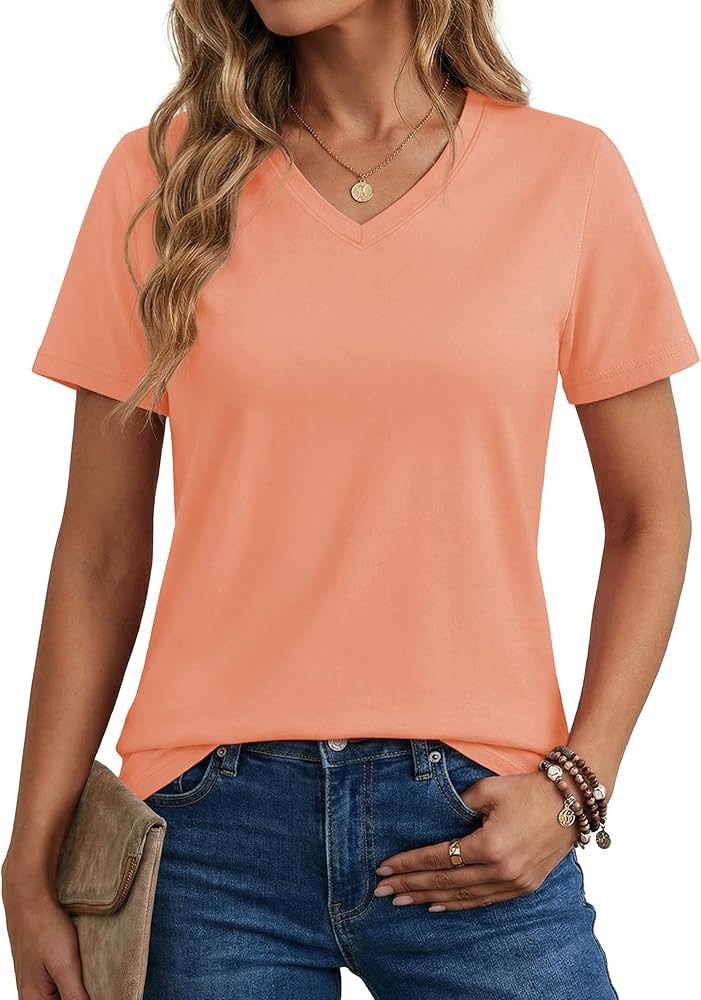 [ V-neck & Tag-Free Neck Label ]: Embrace maximum comfort with the summer casual V-neck tops for women, featuring a tag-free neck label design that eliminates irritation.