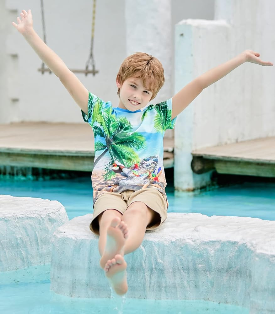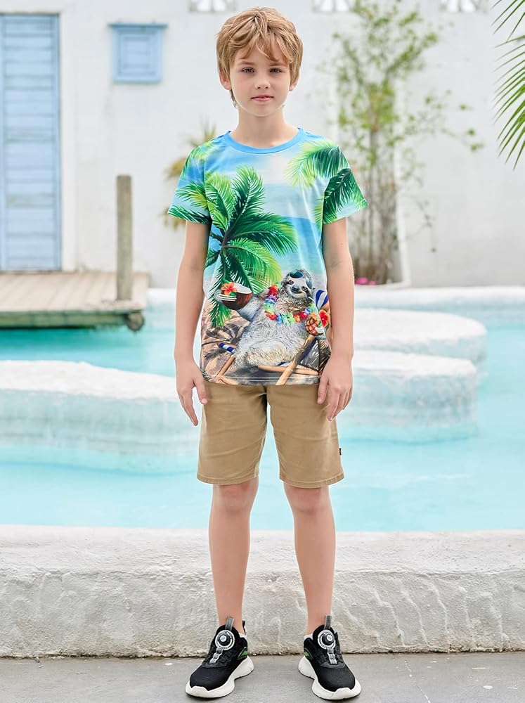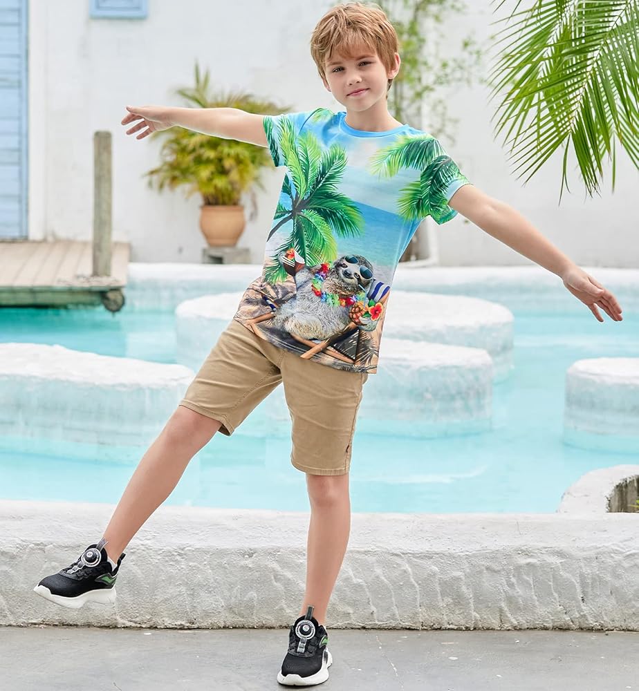 Fashion Graphic Design: Novel 3D printing elements, unique patterns such as galaxies, lions, wolves, dinosaurs, pineapples, sharks, painted, astronaut cats, etc. Make the boy's girls T-shirts full of vitality