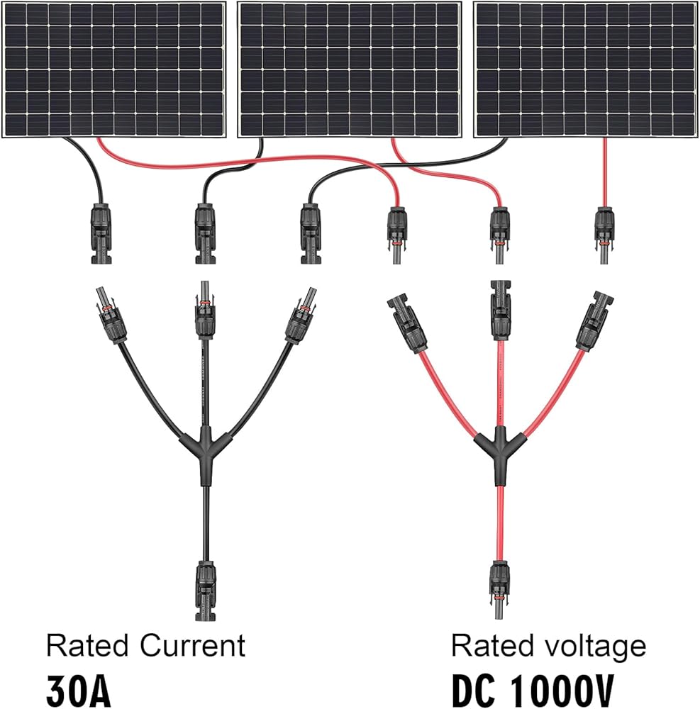 Solar Panel Connectors 3 to 1 Y Branch PV Connector Kit 1 Pair Solar Parallel Adapter 30A IP67 Waterproof Solar Panel Splitter Cable for RVs Roof (M/FFF, F/MMM)