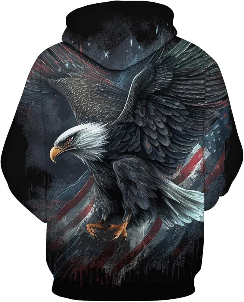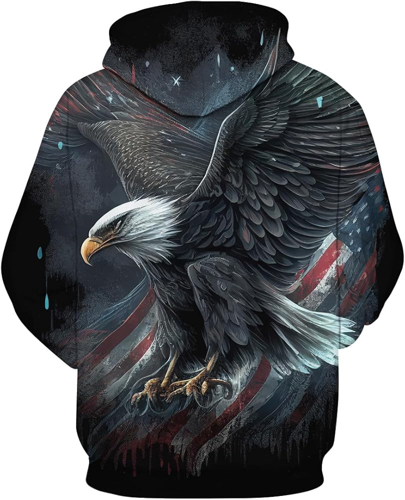 Unisex American Eagle Print HoodiesSweatshirt Pullover with Pocket