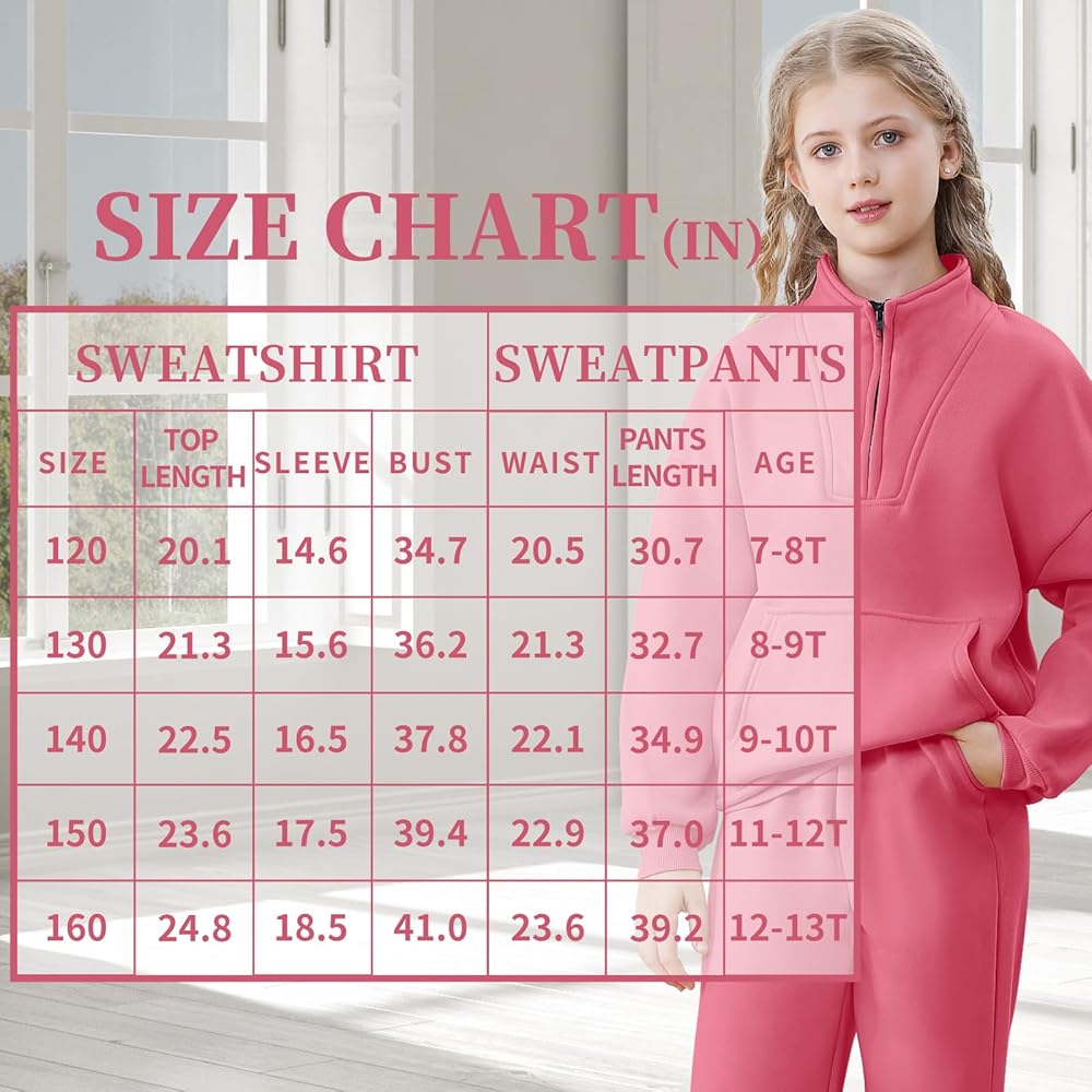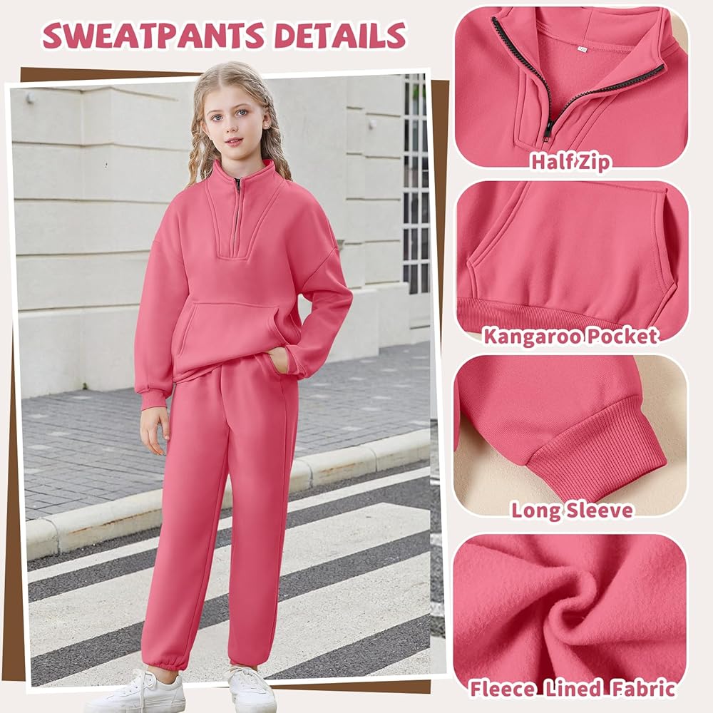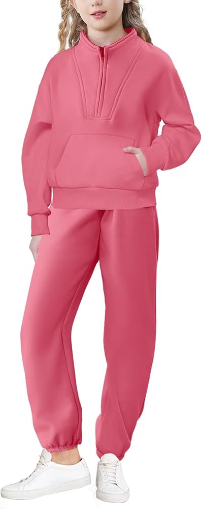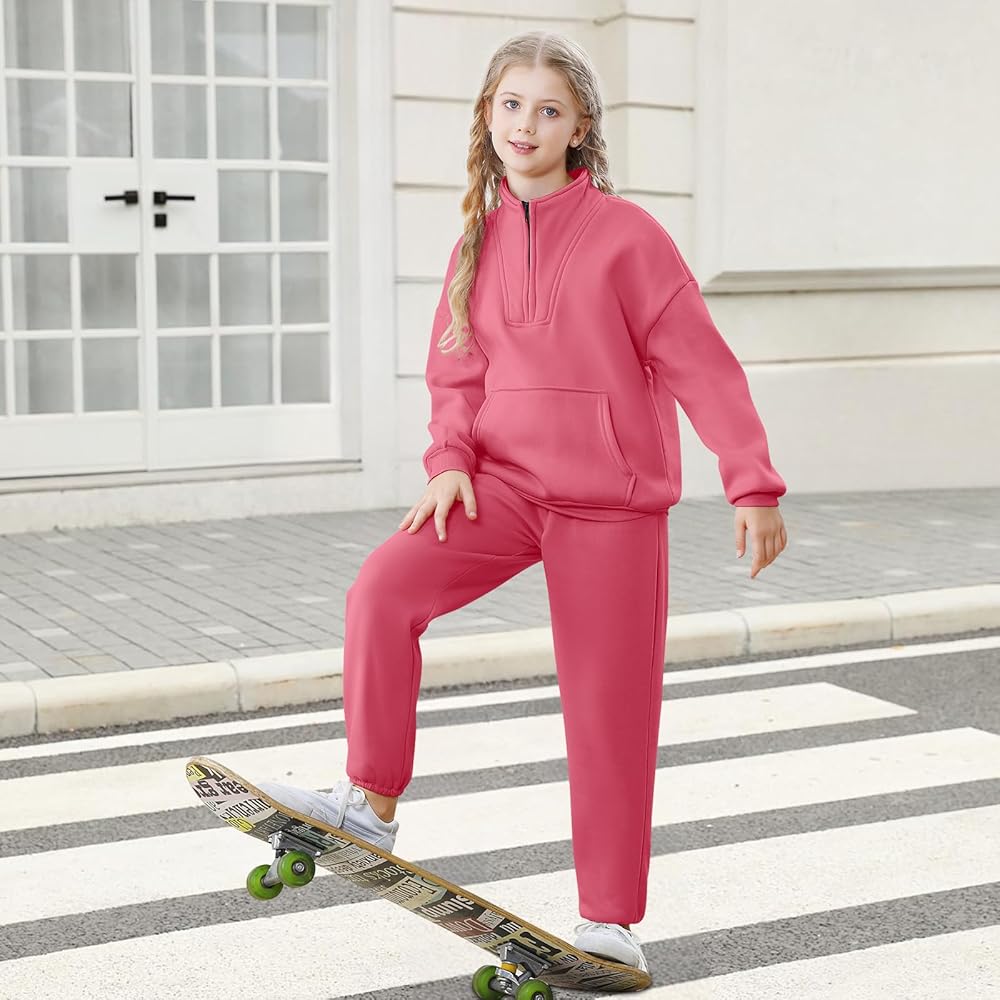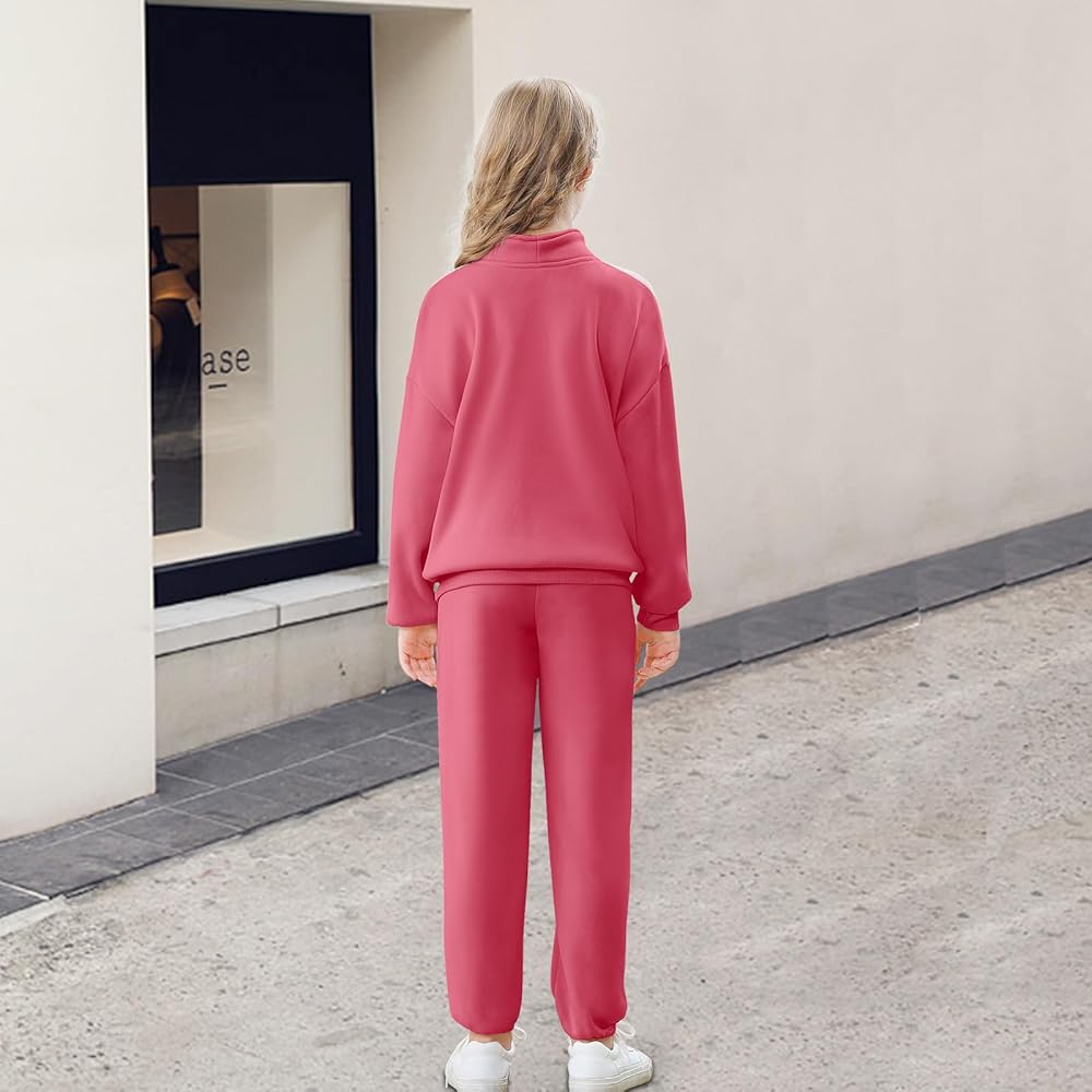 Trendy Design:Lapel sweatshirt for girls feature half zip design allows adjust the zipper freely according to the temperature. The girls sweatpants combined a comfortable elastic waistband with side pockets, Creating a stylish and active silhouette