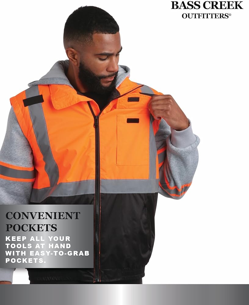 HIGH VISIBILITY FOR MAXIMUM SAFETY: Be seen in this reflective jacket featuring strategically placed reflective tape for high-visibility protection. Ideal as a construction jacket or safety jackets for men, it meets the demands of tough work environments while ensuring your safety. Whether you need a high vis rain jacket or a safety jacket for your job, this is the mens jacket you can trust. The visibility vest design ensures you're seen day or night.