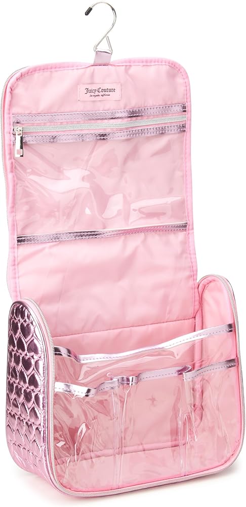 HIGH QUALITY: The Juicy Couture Hanging Toiletries Bag is made of durable fabric with accented zipper pulls; Ideal as a toiletries kit with statement-making prints, patterns and styles; No matter your style, Juicy Couture has a cosmetics bag for you individual style