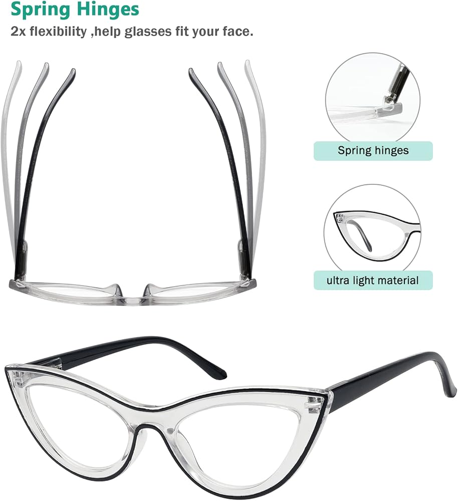 Large frame reading glasses with flexible spring hinges ensure comfortable wear, helping to reduce uncomfortable pinching and stress, making the design suitable for different face shapes.