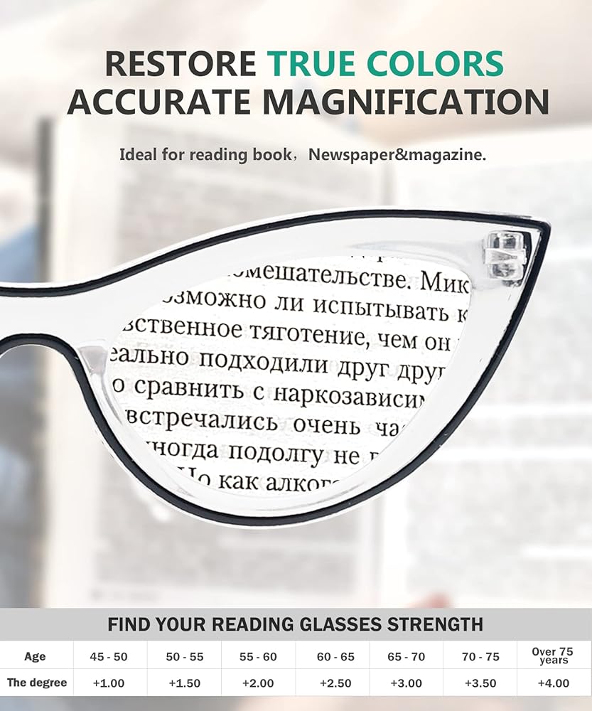 10 pack big frame magnifying glasses for women come in 1 power of your choice.You can enjoy having a pair reading glasses in each room, eliminating the hassle of constantly searching for your glasses.