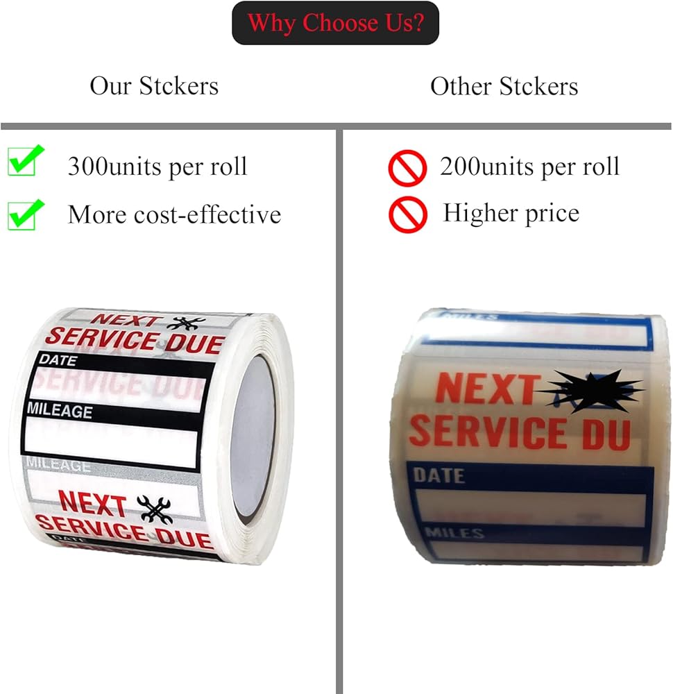【Easy to Use】Each sticker has a perforated line and capable with marker pens. Just write down next-service date and mileage then stick them on the car front fender. What an easy job.
