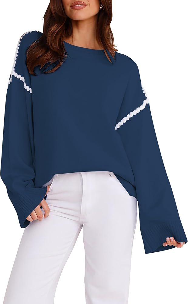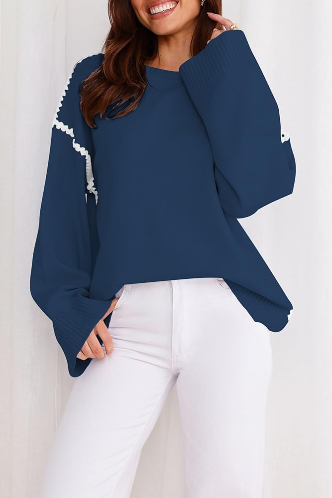 fall sweater women :COLOR BLOCK patchwork design providing a trendy and cute dressy casual look ,ribbed cuffs and bottom ,batwing and loose ,this ladies sweaters for fall will make you stand out from the crowd.