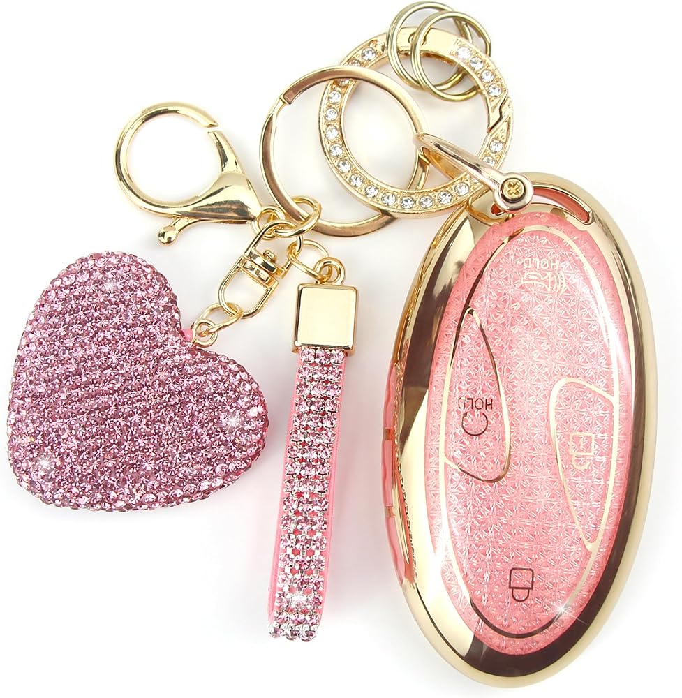 Premium Material & Special Texture: The key case is made of ultra-soft TPU material, super thin and durable. It is easy for you to complete installation or remove it. Moreover, easier to press the button. It has snowflake texture inside that make your car key shining, elegant and unique. Comes with a fashionable keychain, convenient for you to take to anywhere.