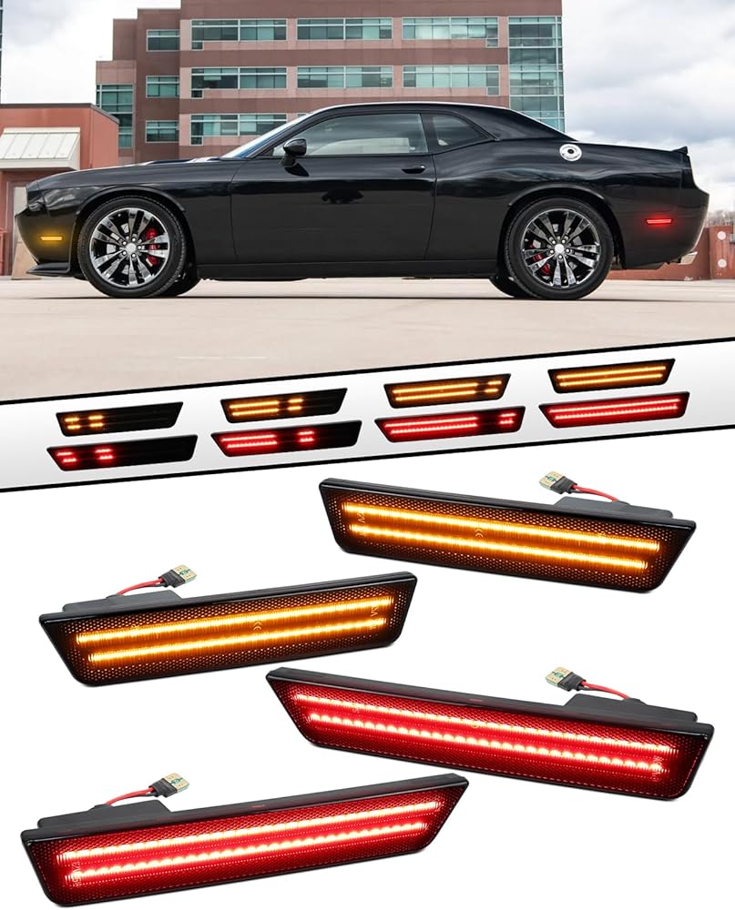 BETTER SERVICE: Package include 2pcs front bumper side marker lights & 2pcs rear bumper side marker lights for dodge challenger; Just be free to email our 24 hours online cutstomer service team if there is any installation questions or quality problems