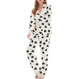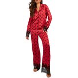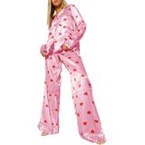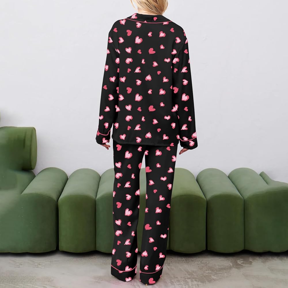 Unique Design: Long sleeve, button down, loose fit, cute heart print, bow print.Women love heart pajamas set, Valentine's Day satin silk pajamas set for women, women lip print pajamas set sleepwear, women bow print pjs set, women heart pajamas set.