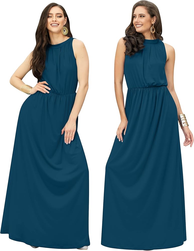 Casual or formal A-line maxi dresses; simple outfits; loose fitted Black maxi dress; full floor length sleeveless dresses; long pleated spring vacation travel sundress; solid color office work maxi's dresses; elegant modest evening gown