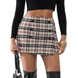 Features:Plaid, High Waist, Tweed, Double Row Button Decoration, Double Layer Front Hitch Piece, Mini Short Skirt, Fall and Winter Fashion, Y2K Style, Holiday Style.