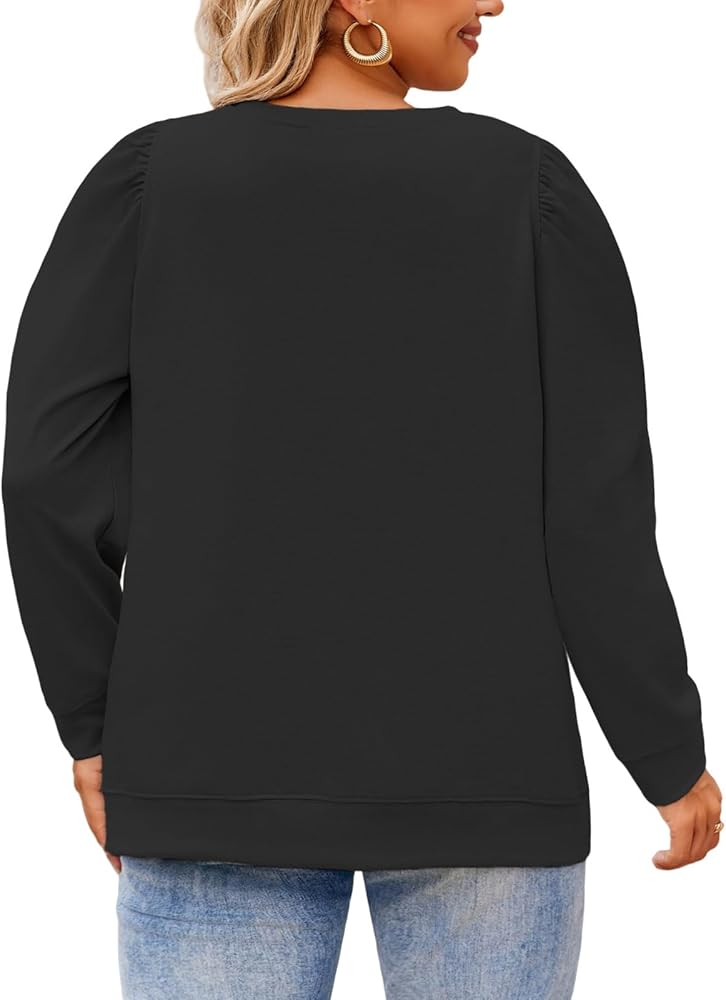 Women's plus size long sleeve tops feature pleated puff sleeve, solid color and classic crewneck design, increase the appeal and create fashionable outfit.